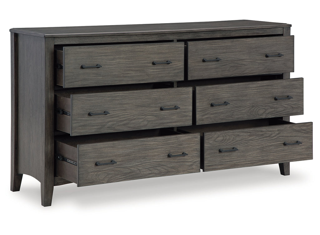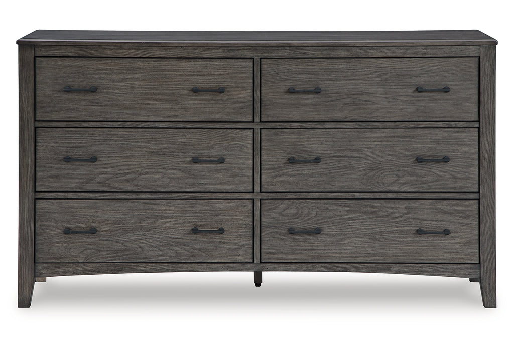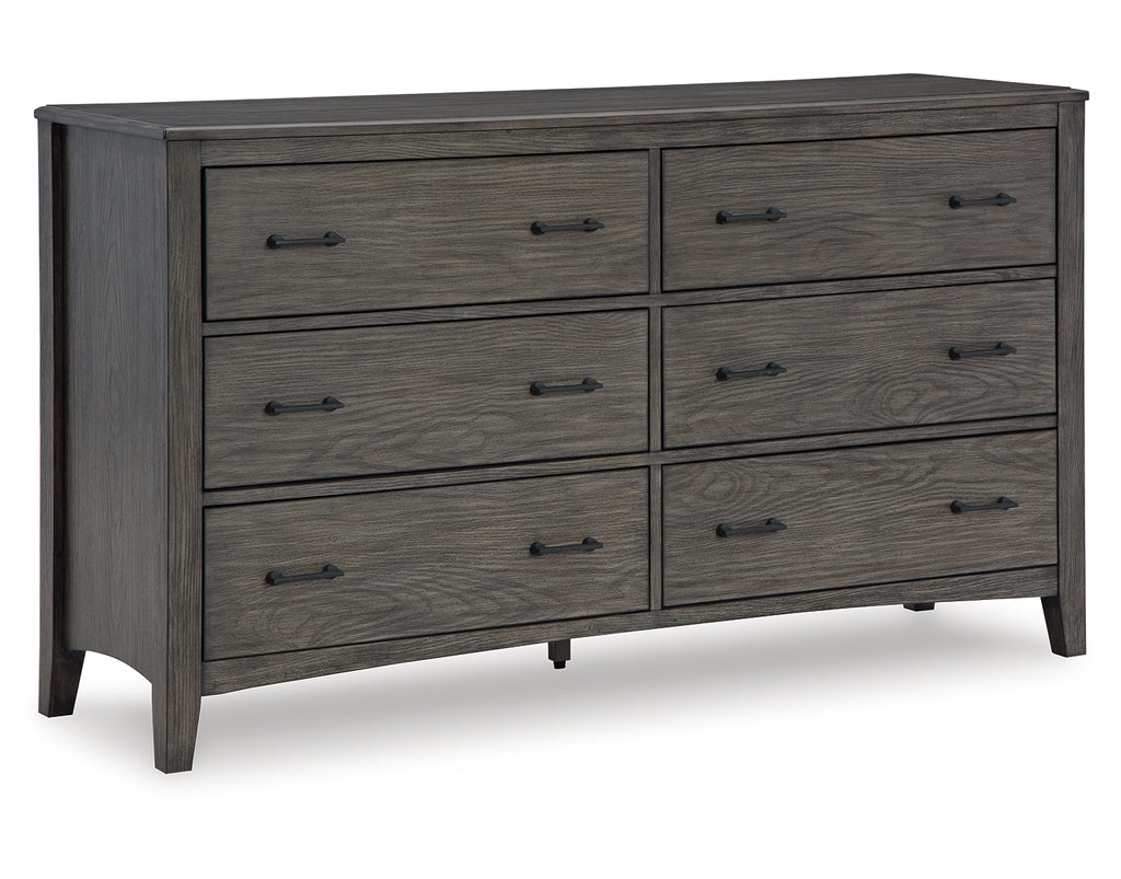 Cool and clean, yet warm and inviting. This dresser has so many standout qualities, making it an inspired choice for your dream destination. A prime example of “casual contemporary” style at its very best, the designer piece is dressed to impress with an embossed wood grain texture. Spacious drawers with fully finished interiors offer ample storage for your wardrobe and spare bed linens. And the medium gray-brown finish with a blackened wood grain is wonderfully easy on the eyes. | Product Features