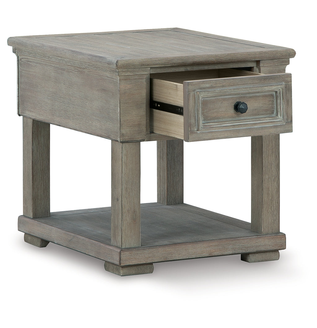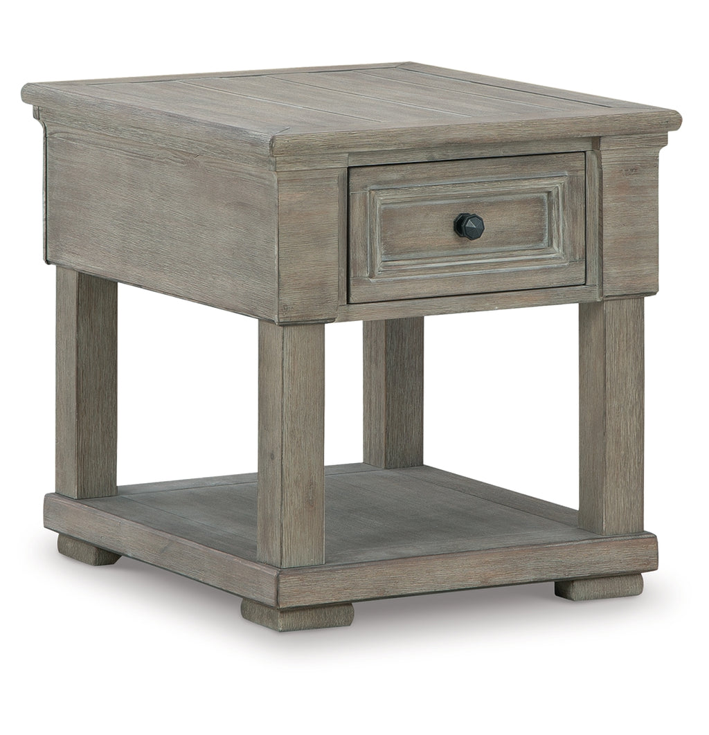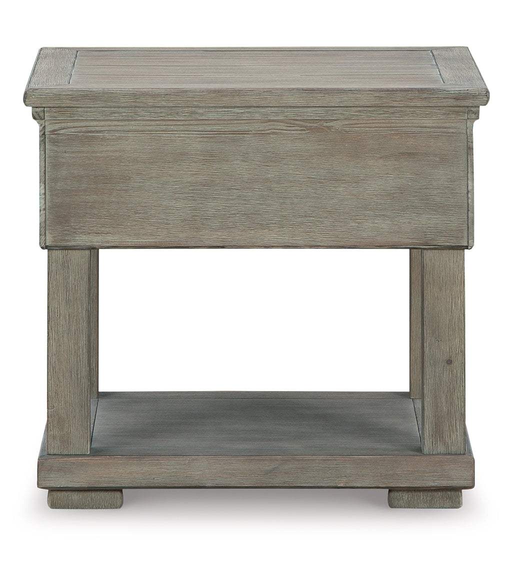 Lighten the look of your living space. This end table offers a casual traditional aesthetic, with natural wood undertones enhanced by a glazed bisque finish and wire-brushed texture. Its drawer and lower shelf add convenient storage and display space. | Product Features