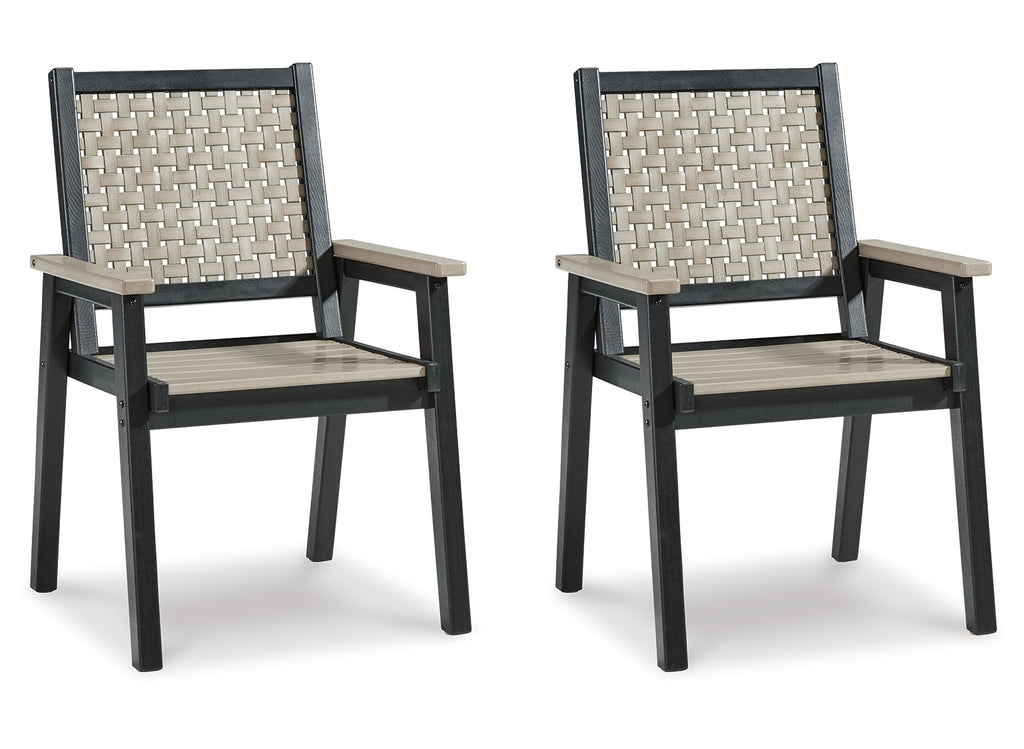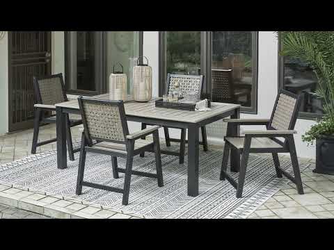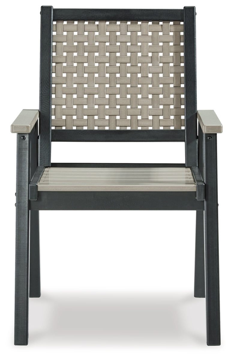 On-trend stylings take to the outdoors with this arm chair. Its two-tone look in driftwood and black has a laid-back luxe appeal. High design meets durability with this outdoor chair's weather-resistant HDPE construction—a stunning display of form and function. | Product Features