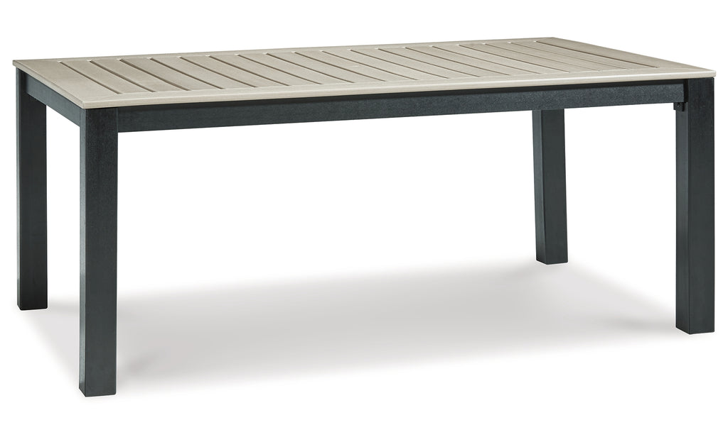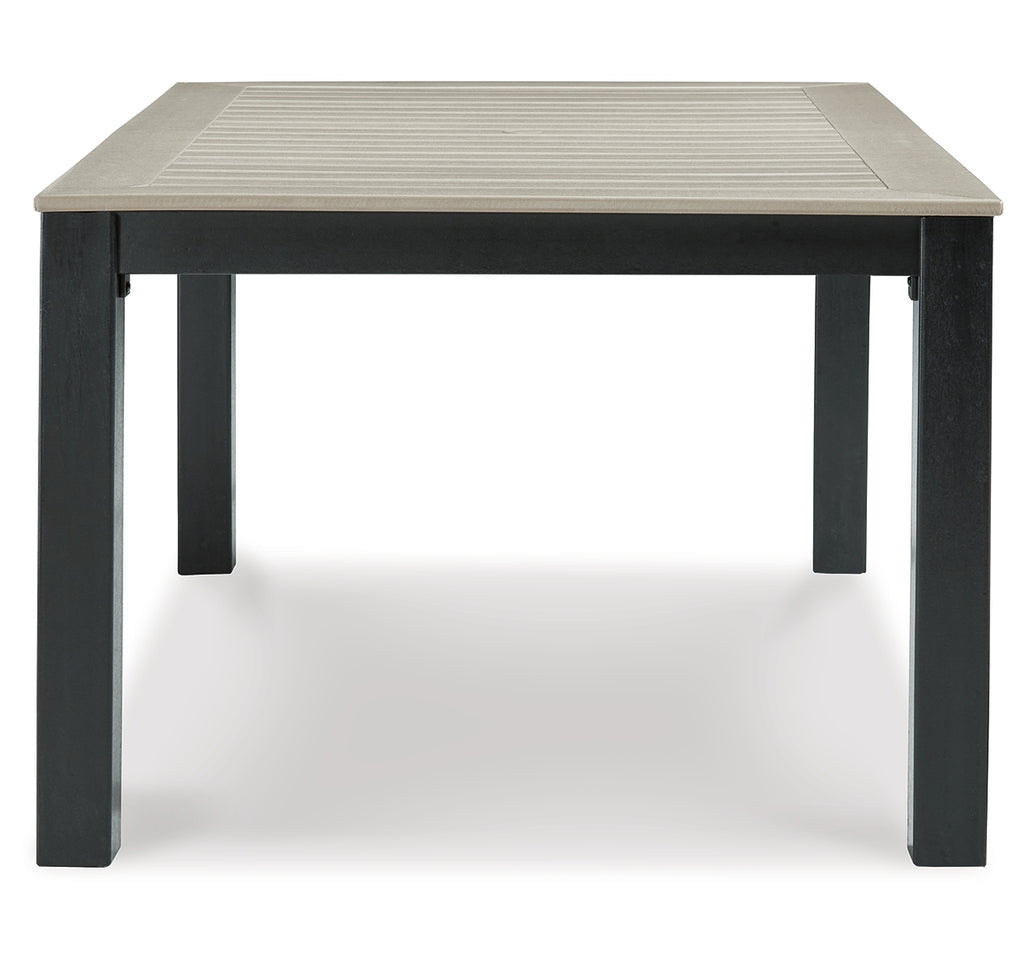 On-trend stylings take to the outdoors with this dining table. Its two-tone look in driftwood and black has a laid-back luxe appeal. High design meets durability with this outdoor table's weather-resistant HDPE construction—a stunning display of form and function.
