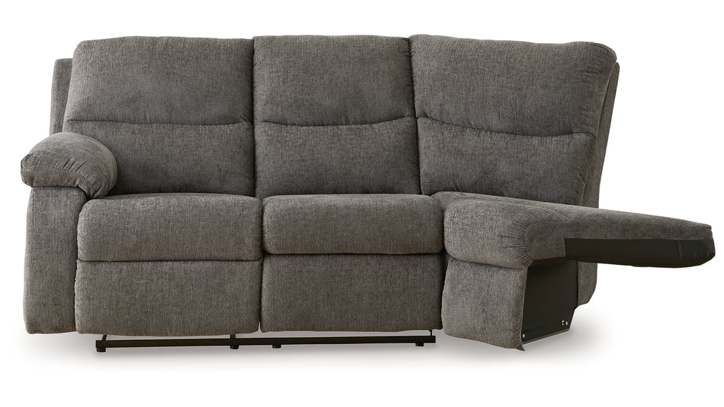 This left-arm facing reclining loveseat with half wedge is made with polyester upholstery. Pairs with other items in the series to make a sectional. | Product Features - Compatible with other 81807 items, sold separately