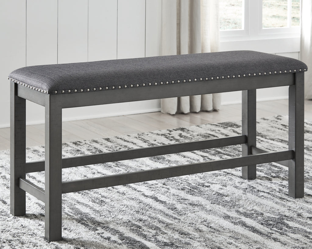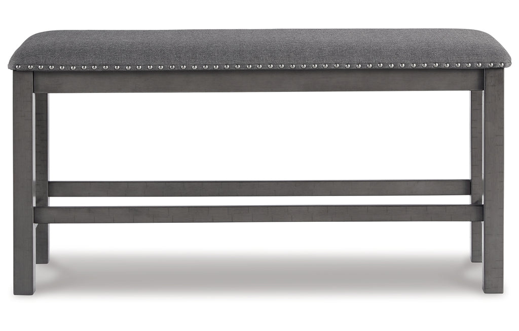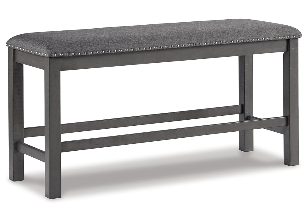 Going gray in the best possible way. This dining bench wows with an utterly on-trend smoky gray finish. Its softly cushioned seat with gray textured upholstery and nailhead trim will have you lingering a little longer at mealtime. Just a touch of distressing helps it fit right in with your modern farmhouse decor.
