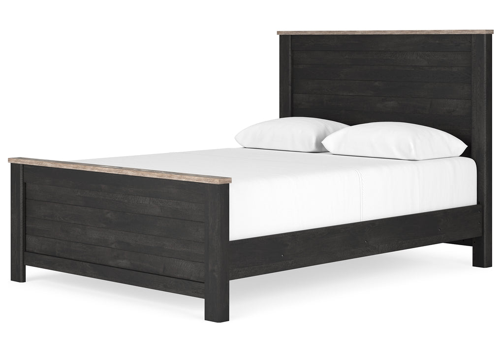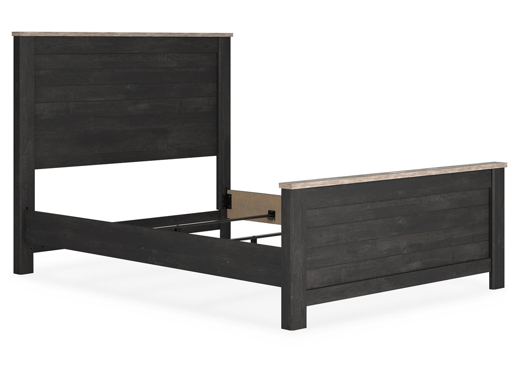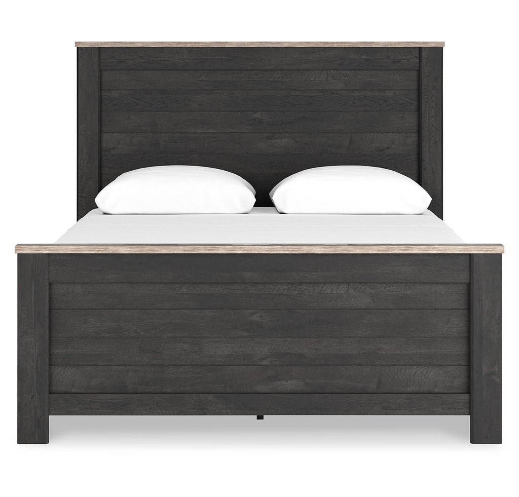 Charming French farmhouse aesthetics. Deep, industrial-inspired hues. This queen panel bed balances beautiful simplicity with the luxurious details of yesteryear. The distinct two-tone finish is bold without sacrificing the piece's quaint character. And with its stunning large-scale silhouette, this bed is sure to appeal to your unique eye for vintage-inspired design. | Product Features