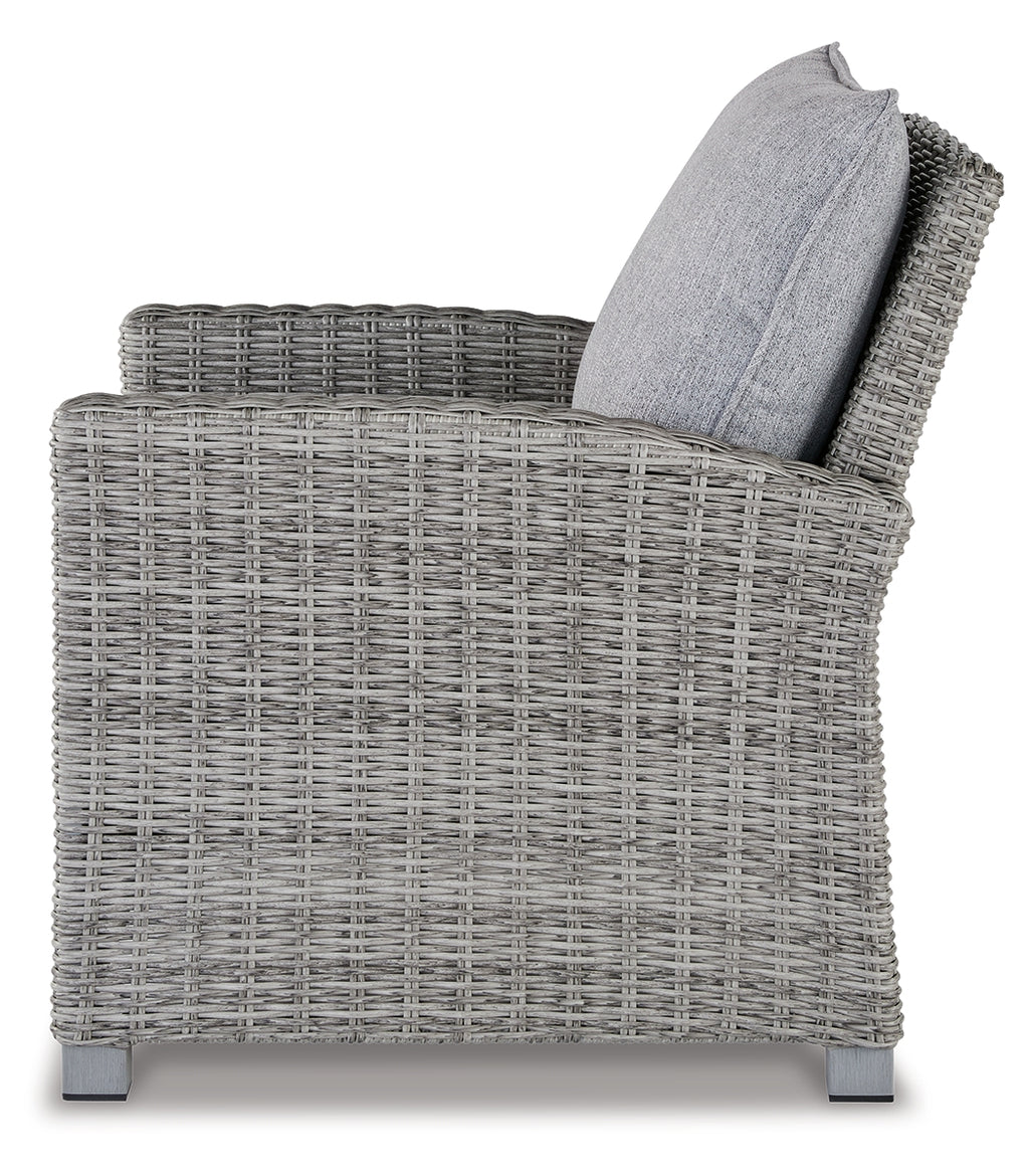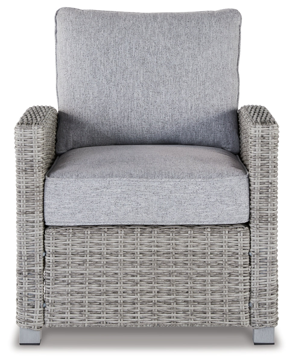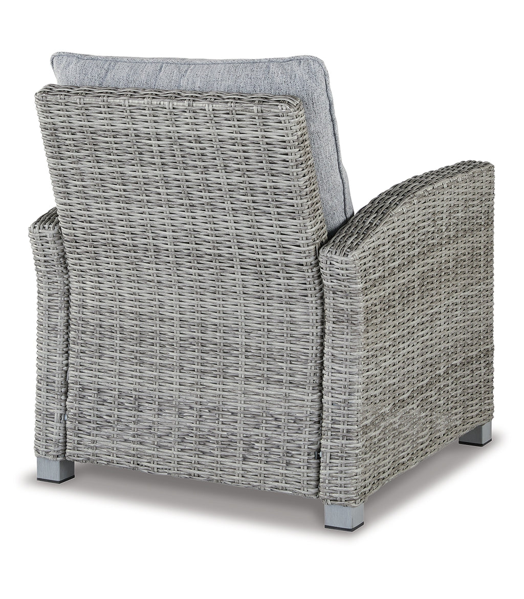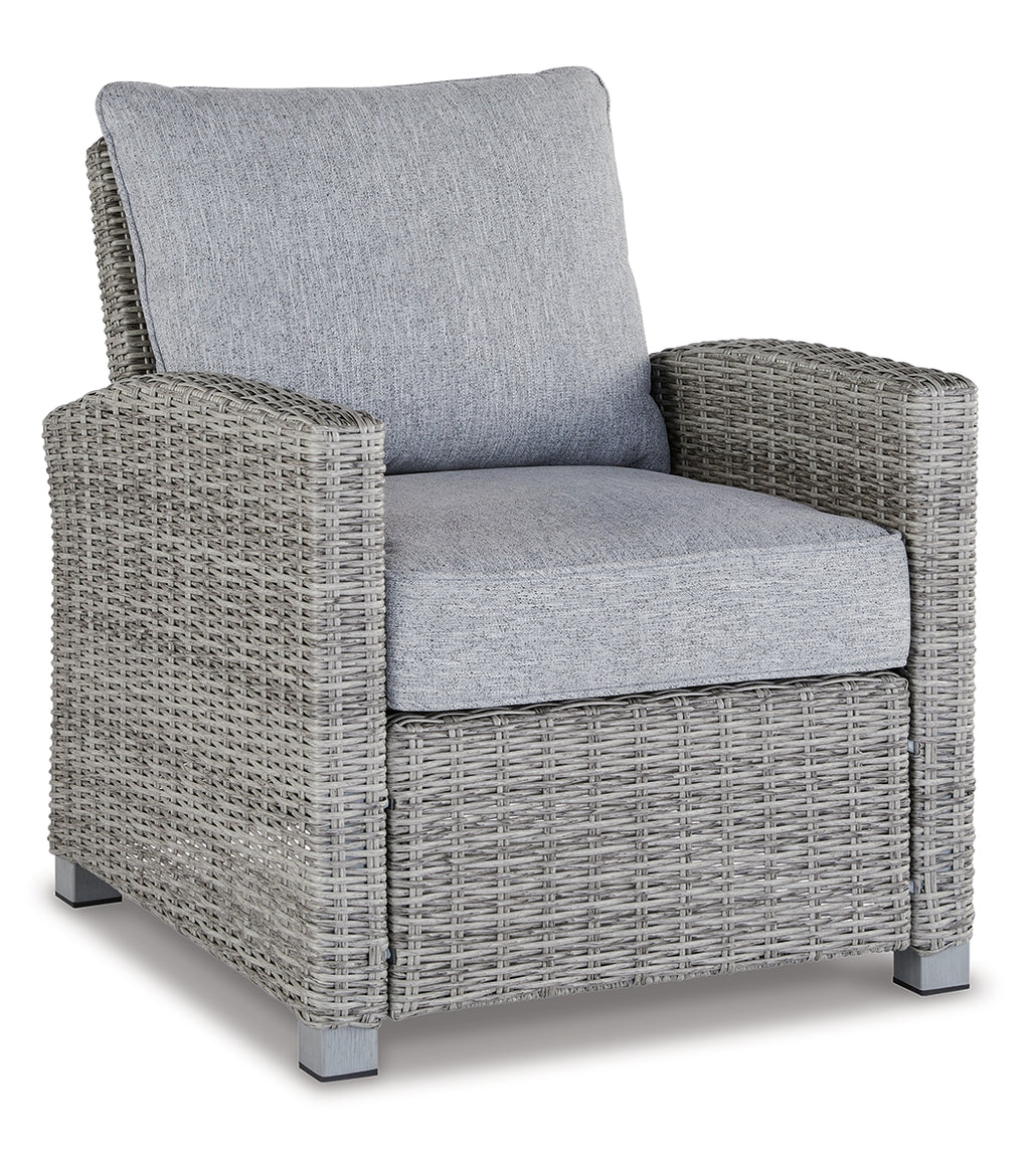Indulge in backyard bliss. This outdoor lounge chair has a straightforward sense of style with its light gray resin wicker and wood-look finish. Gray high-performance Nuvella+™ fabric covers the cushioned seat and back, weathering the elements and keeping your aesthetic casually cool. | Product Features