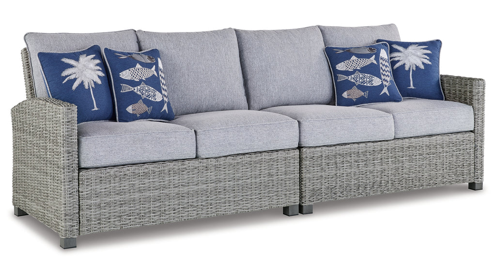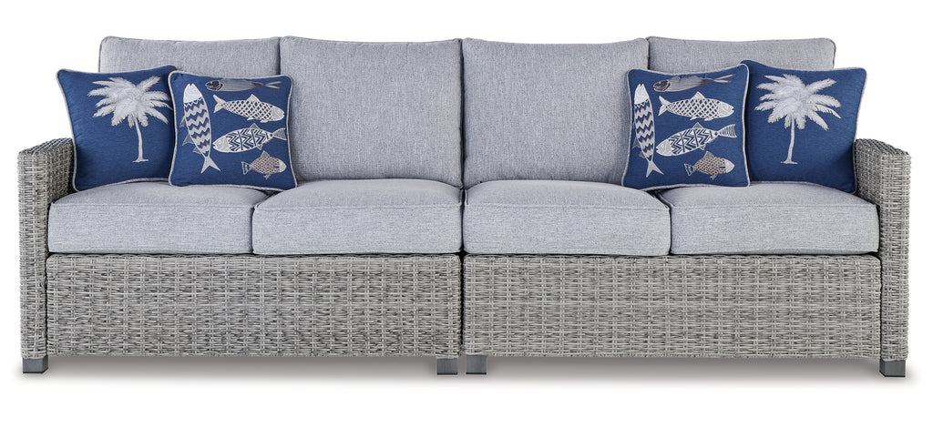This set of 2 outdoor right- and left-arm facing loveseats with cushions is made with easy-clean polyester Nuvella+™ upholstery. Pairs with other items in the series to make a sectional. | Product Features - Compatible with other P439 items, sold separately