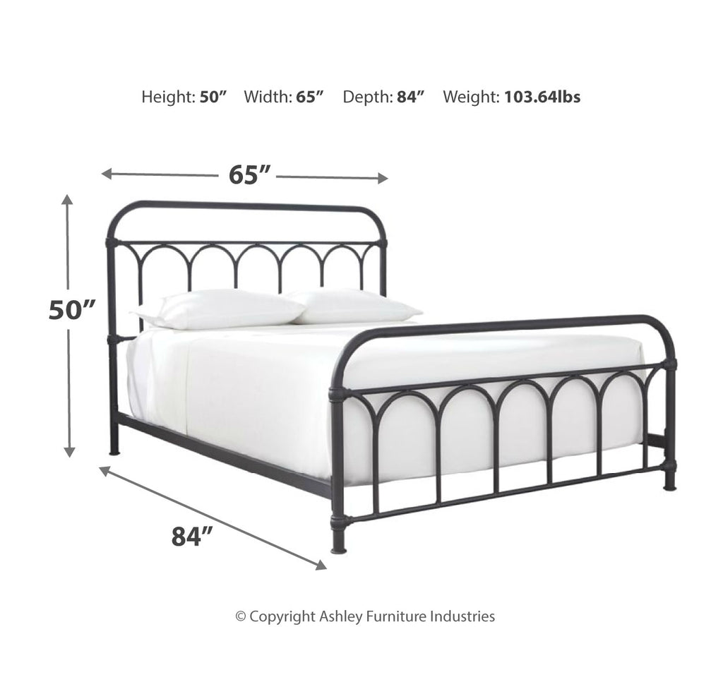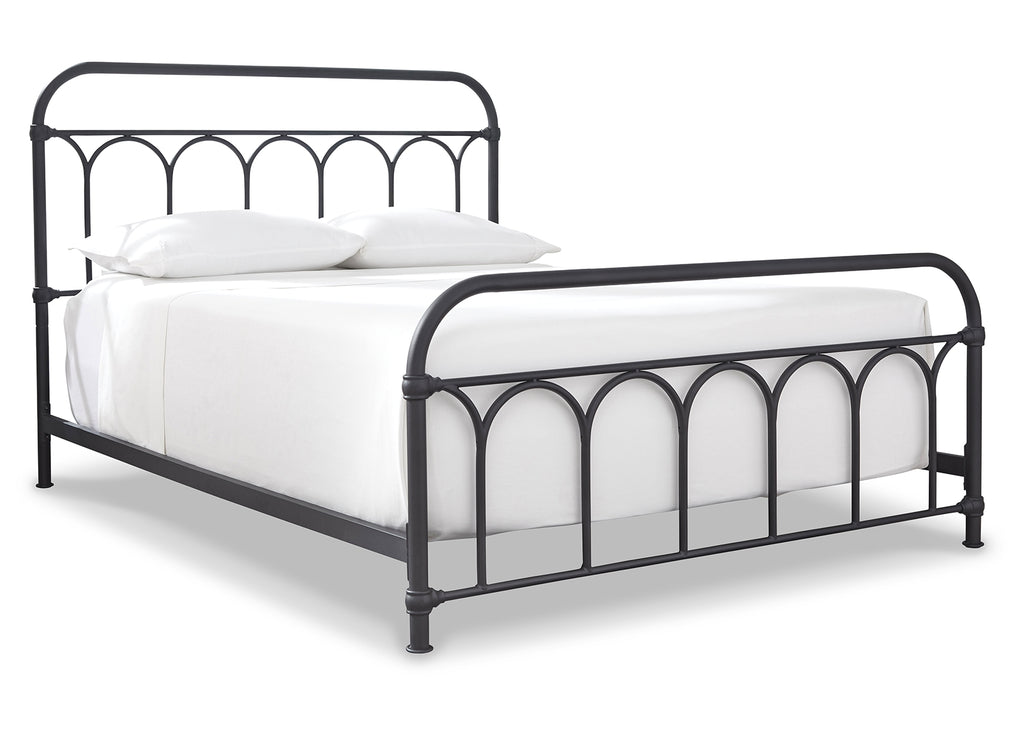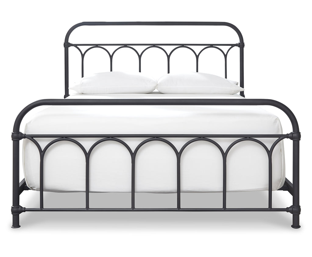 Looking to bring back a sense of bygone charm? Dream it, live it with this queen metal bed. Matte black frame with moulded "fittings" brilliantly mimics wrought-iron beds from yesteryear for a look that’s perfect for your modern farmhouse or cottage-quaint escape. | Product Features