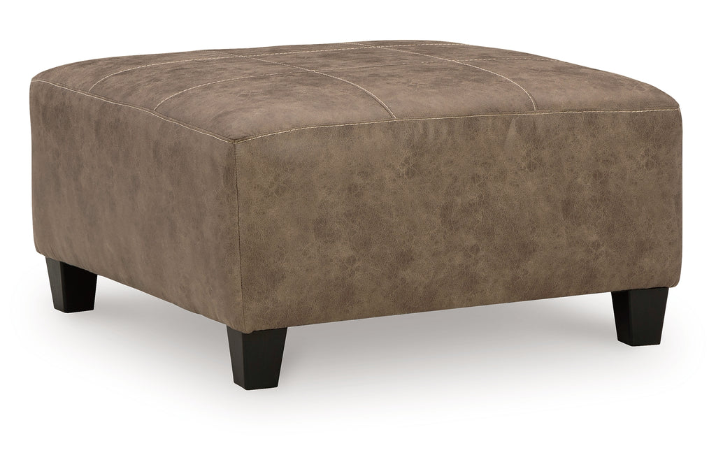 This decidedly modern oversized accent ottoman proves less is more, bringing simply inviting style to your living room. Take the guesswork out of decorating—its warm faux leather has a universal appeal, pairing with casual and contemporary aesthetics alike. With this companion piece, all you need to do is kick back, relax and enjoy the comforts of home. | Product Features