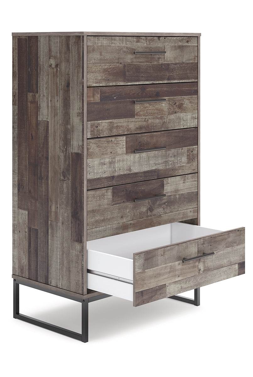 - 5 smooth-gliding drawers with vinyl-wrapped sides and back
