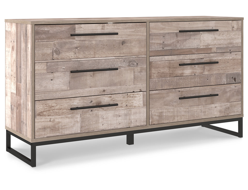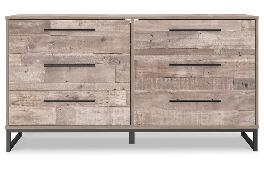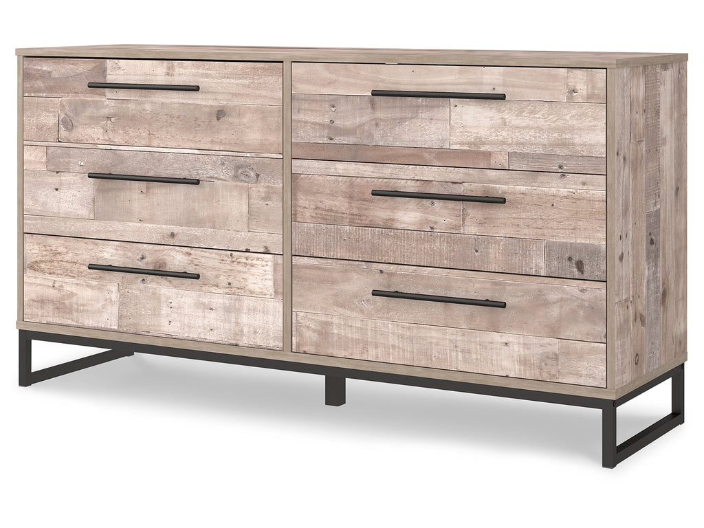 Part beach chic, part urban hip, this dresser is everything you dreamed of, at a comfortably cool price. The butcher block whitewash finish over replicated pine grain lends a richly relaxed aesthetic that suits your sensibility. Dark pewter-tone drawer pulls and sled legs add a high design element. What an easy-breezy choice for a naturally beautiful bedroom retreat. | Product Features