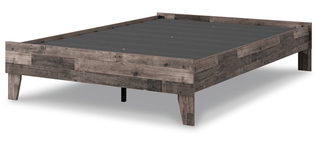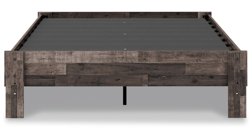 Streamlined design and a stunning finish come together in one simply extraordinary bed. This full panel bed is sure to impress with platform styling and a rich brown finish over replicated pine grain texture. Its mid-century profile is a nod to the past, while the updated finish keeps it solidly in the present. | Product Features