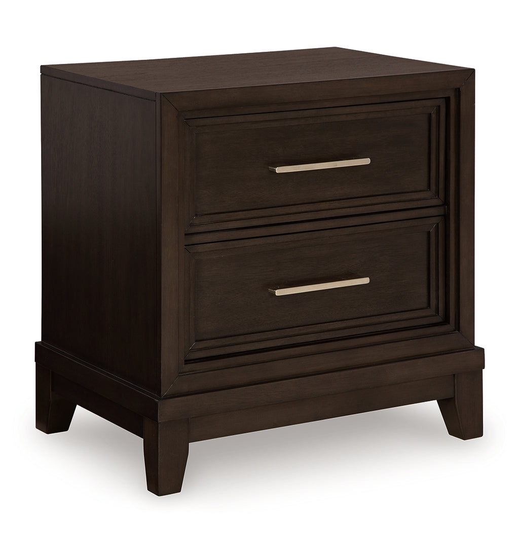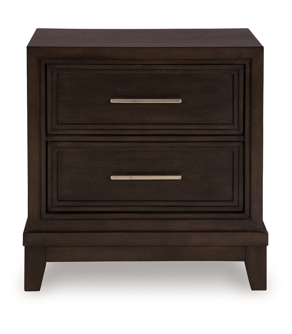 This nightstand combines modern and art deco styles for both traditional and contemporary arrangements. With elegant stepped moulded framing and two spacious drawers, it adds dimension to your sanctuary while keeping your belongings organized and clutter-free. Indulge in a fresh look that feels right at home. | Product Features