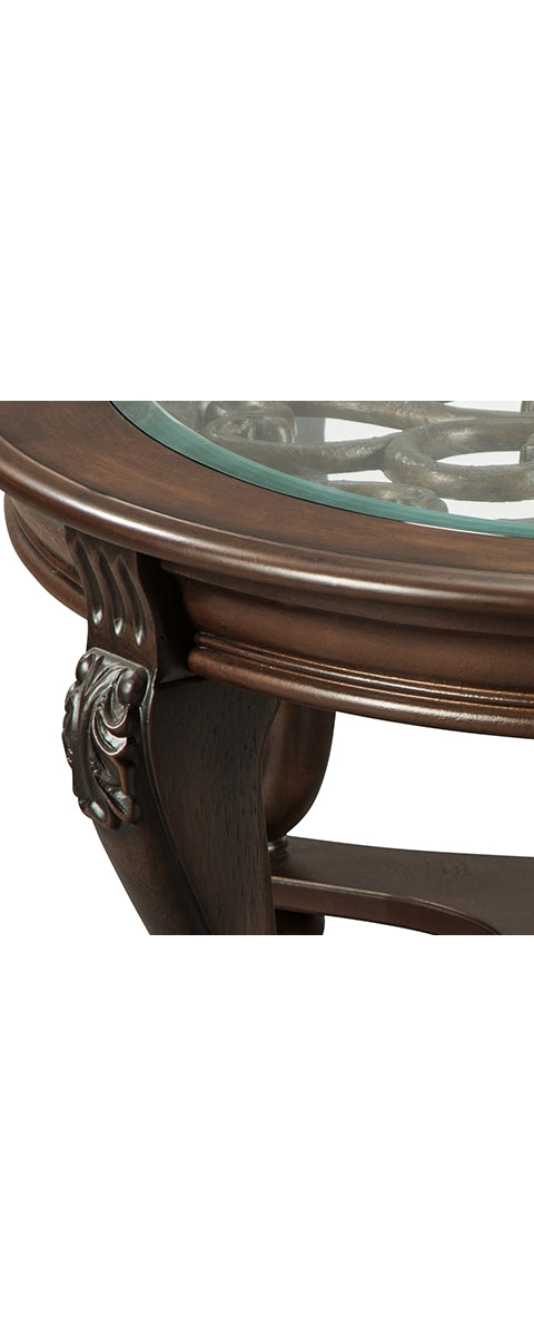 Made of veneers, wood and engineered wood cast resin accents and glass top