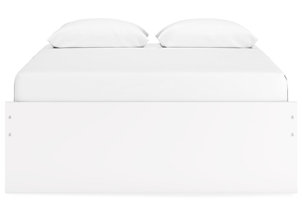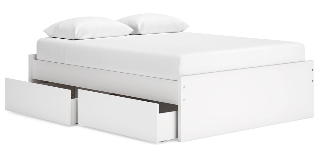 Create the modern bedroom of your dreams. This queen platform bed offers a minimal design with maximum style, combining ultra-clean lines and an easy-elegant solid white finish with a hardware-less aesthetic. Four spacious storage drawers with ball-bearing glides make putting things away a snap. There's no box spring or foundation needed, so you can splurge on a mattress that's sure to carry you away to a soothing place. | Product Features