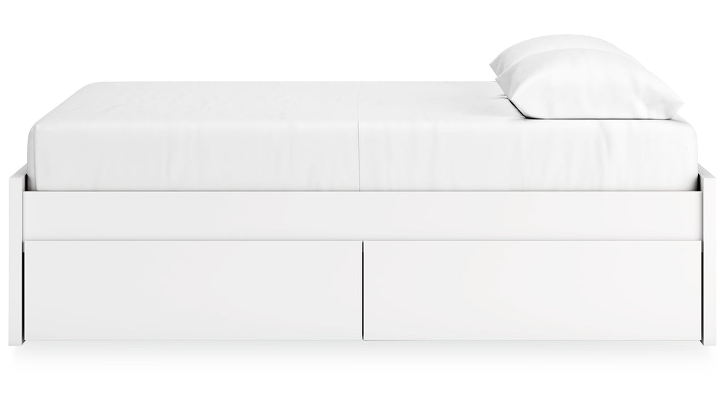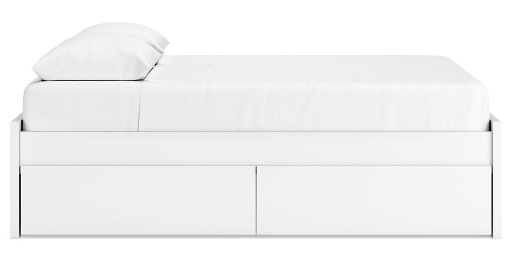 - Includes panels, rails, roll slats and 4 side storage drawers