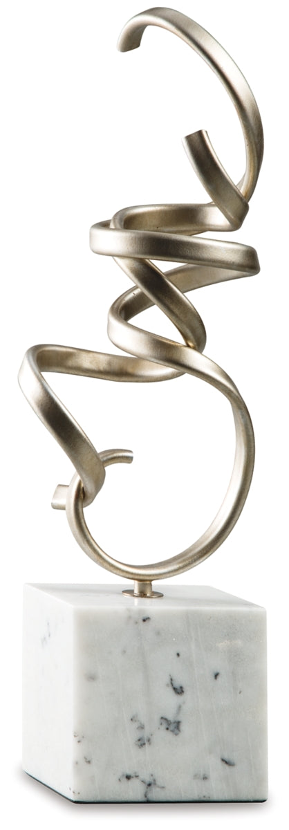 Richly crafted of champagne-finished metal and white marble, this sculpture is high art made highly affordable. Whether placed in an entryway or main room, what a beautiful way to bend the rules. | Product Features