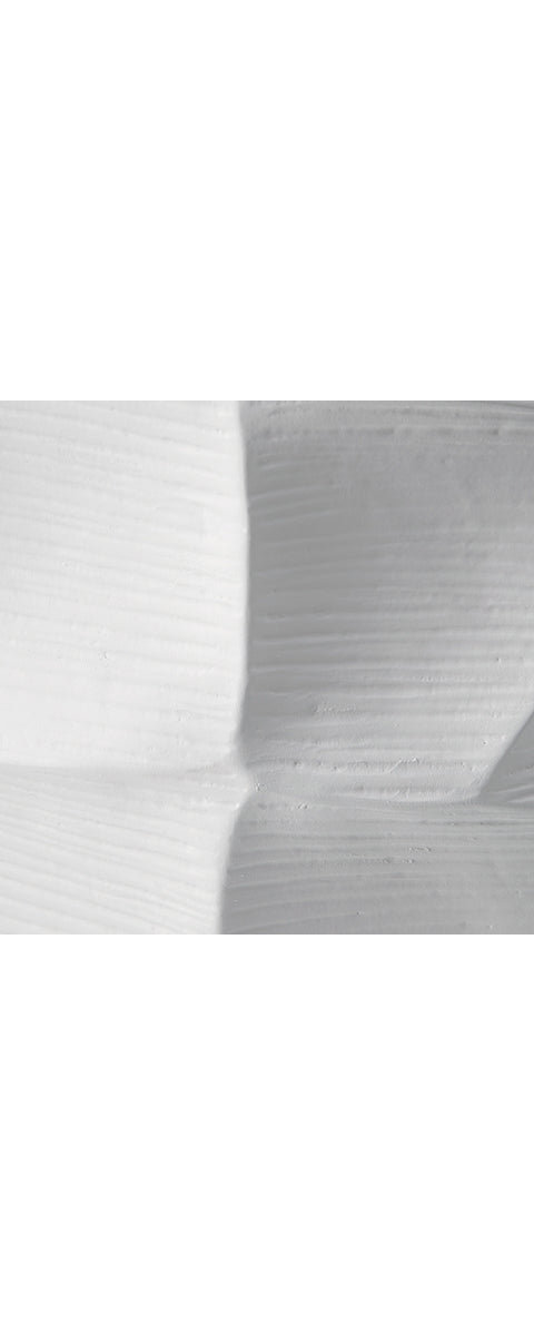 A contemporary take on texture. This vase’s sculptural details are made all the more beautiful with a crisp white finish. It’s stunning when displayed on its own, making an impression on accent tables and bookshelves. Want to change your decor with the seasons? Use it to display your favorite faux greenery or other decorative fillers.