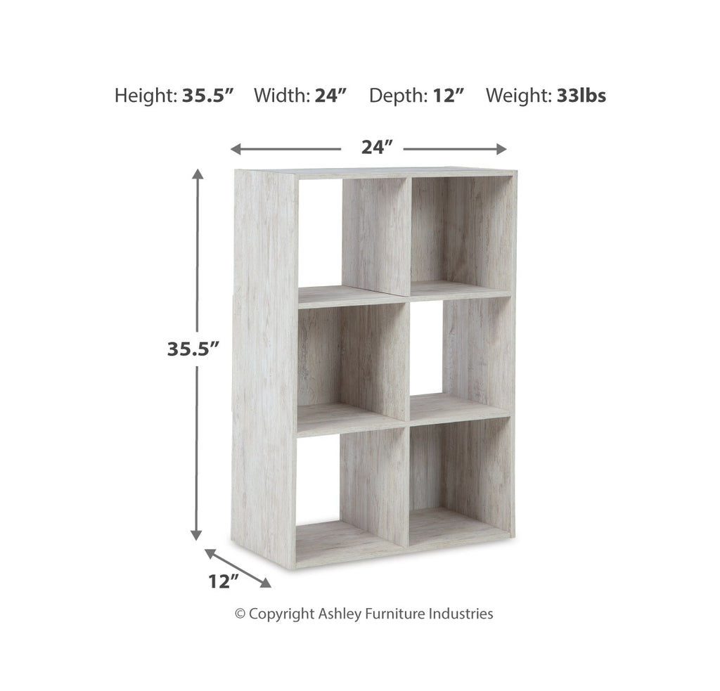 If it’s coastal chic or cottage quaint style you long for, the Paxberry whitewashed six-cube organizer invites you to go to town. Its distinctive weatherworn finish conveys an easy-breezy sensibility, perfect for a restful bedroom retreat. Open and closed backs make it abundantly practical. |