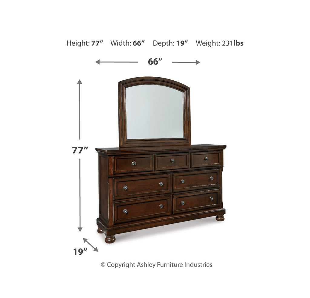 The quality craftsmanship is clear to see. The classic design elements—including inlaid panels, antiqued hardware and bun feet—are easy to love. Satisfying your taste for vintage inspiration, this dresser is elegant without looking fussy. Seven roomy drawers keep your wardrobe organized in style, while a hidden pull-out tray puts your small valuables out of sight. The beveled mirror frame beautifully echoes this dresser’s rustic finish. |