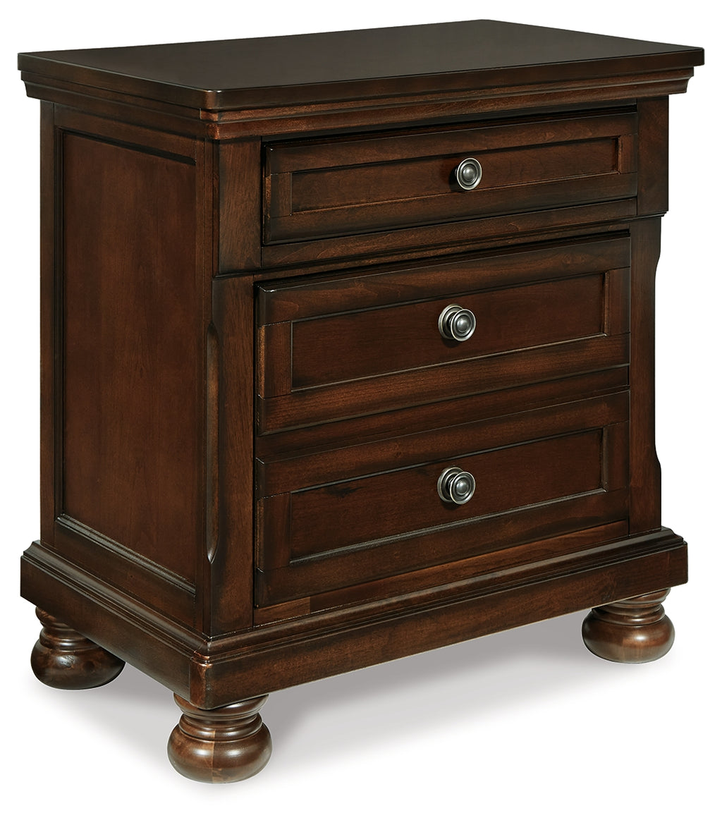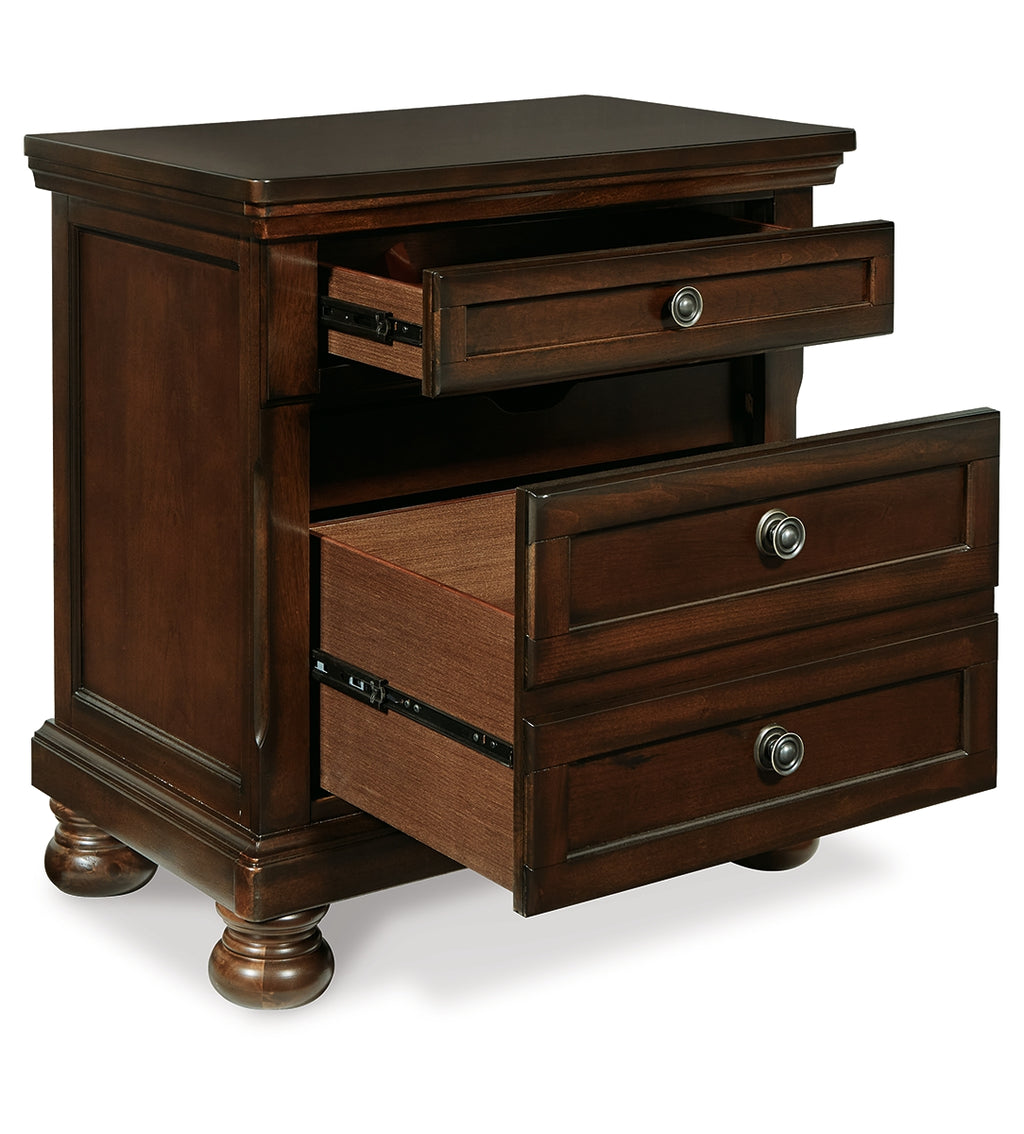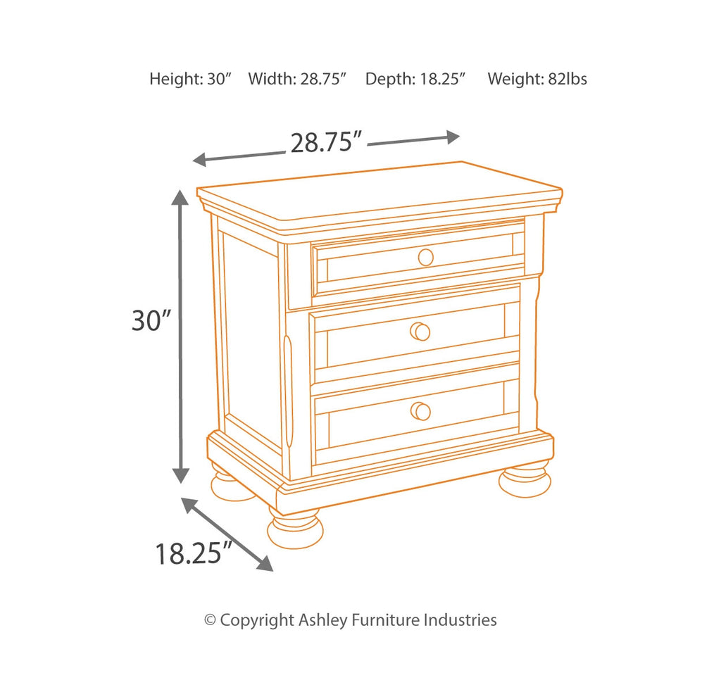 The quality craftsmanship is clear to see. The classic design elements—including antiqued hardware and bun feet—are easy to love. Satisfying your taste for traditional furnishings, this nightstand is elegant without looking fussy. Two drawers—one large, one small—keep bedside odds and ends within easy reach. A hidden pull-out tray behind the bottom drawer puts your small valuables out of sight. | Product Features