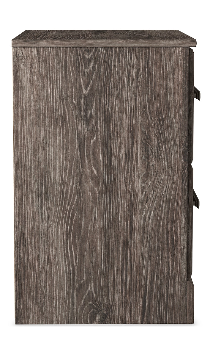 With its clean-lined look and modern attitude, this nightstand is a fresh style awakening. A warm gray hue over replicated oak grain easily complements other furniture finishes. Smooth drawer fronts with antiqued pewter-tone handles complete the aesthetic. |