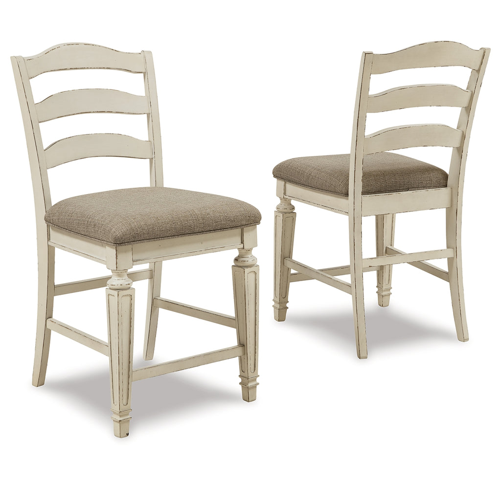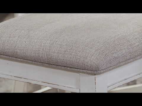 Bon appétit. With its rounded ladderback styling, chipped white finish and plushly cushioned seat, this counter-height bar stool has all the right ingredients for a French country-inspired feast for the eyes. | Product Features