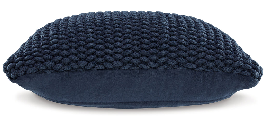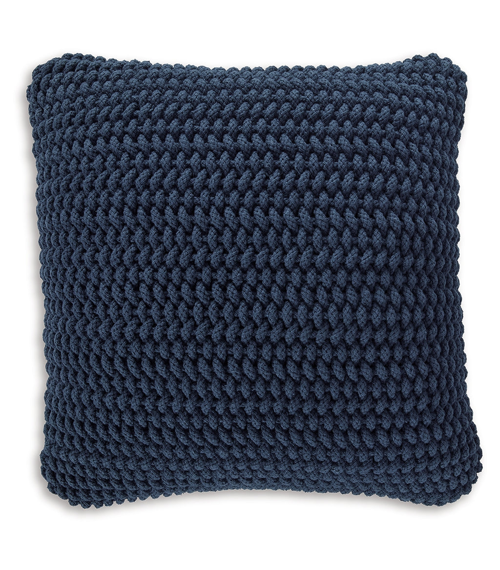 Simply chic, this pillow welcomes cozy style to your sofa, sectional or bed. Its deep blue hue and inviting handwoven design complete casual and coastal retreats alike, adding a stylish touch to your reading nook or lounge area.