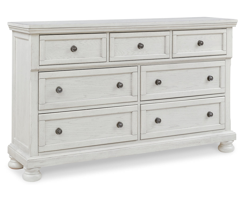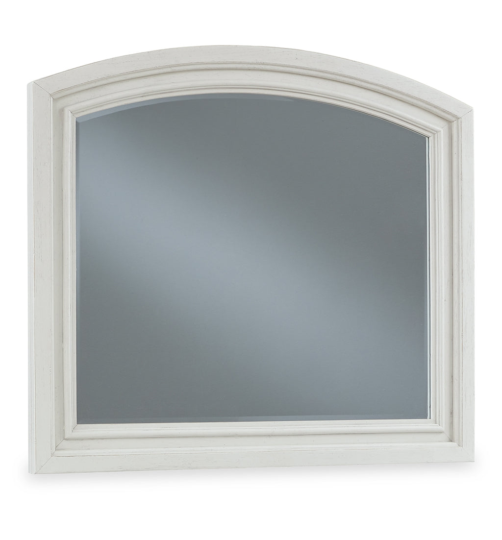 Elegant, timeless furnishings take your bedroom to the next level. Nothing does that better than this dresser with mirror. The antiqued white finish with a wonderful grain texture radiates sophistication, while the dark bronze-tone hardware adds an ornate touch. A hidden pull-out tray behind the top middle drawer puts your small valuables out of sight. Felt-finished top drawers round out the piece for the ultimate tasteful bedroom.