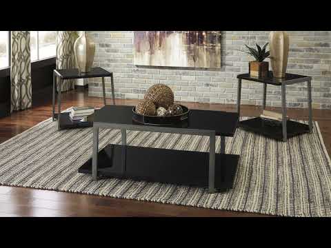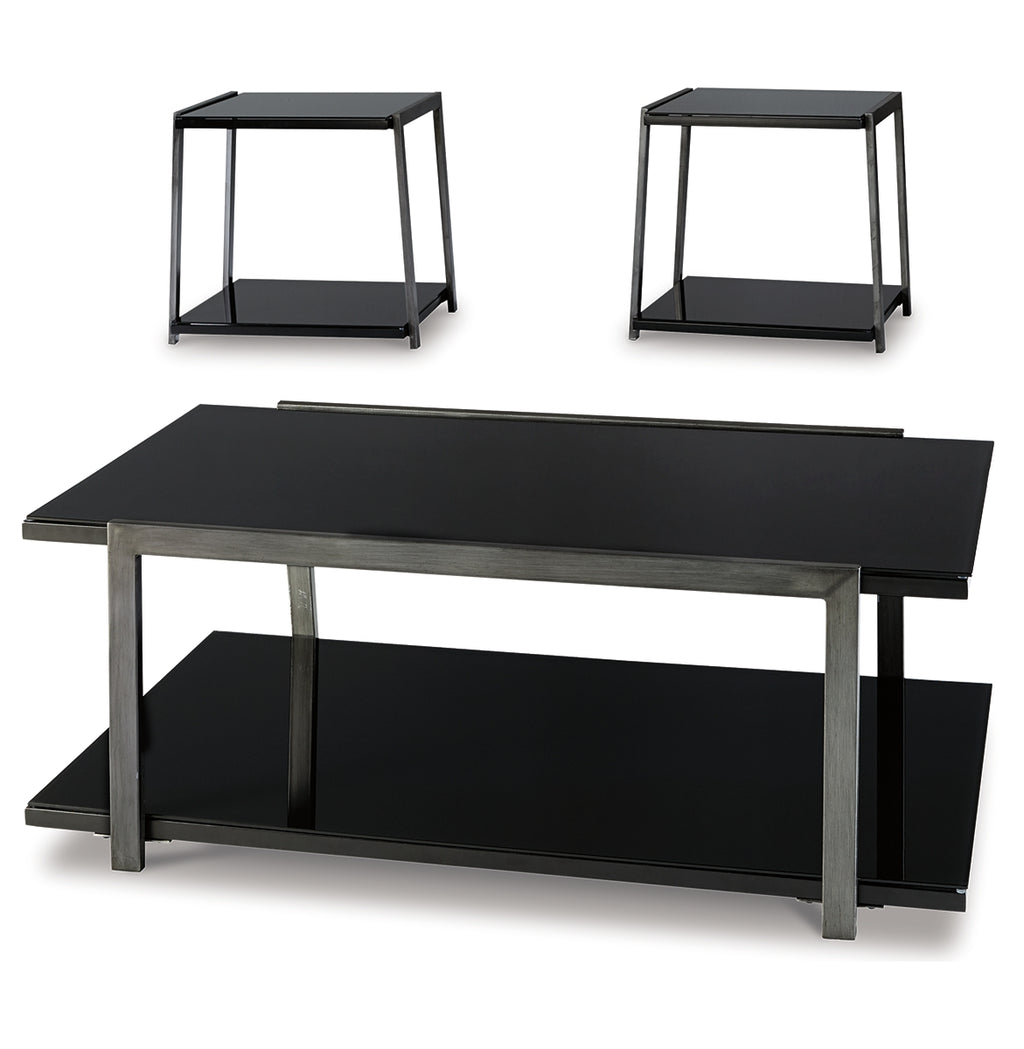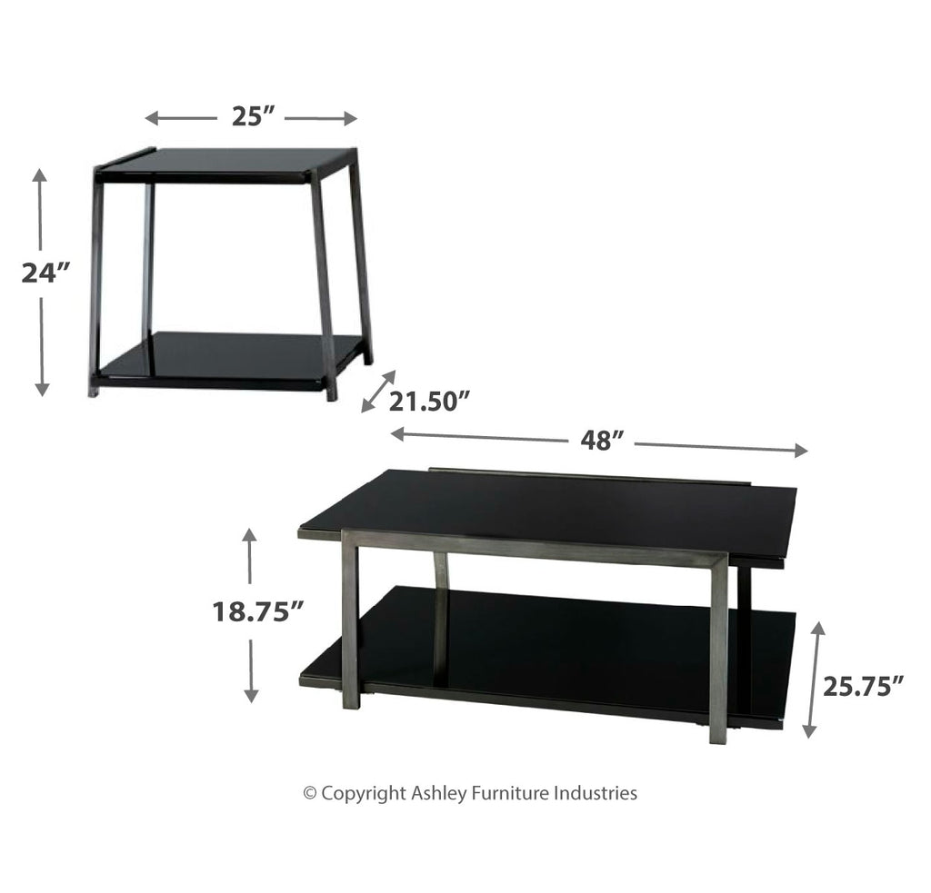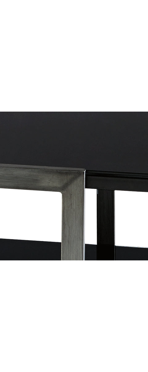Set the stage for a highly contemporary aesthetic with this coffee table set. Crisp, clean and delightfully different, the coffee table set’s blend of black glass with aged silvertone metal makes a high-style fashion statement. | Product Features