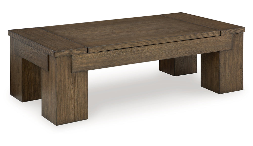 With its sleek silhouette and timeless color, this coffee table appeals to lovers of casual contemporary style. Its architectural geometry and chunky silhouette uniquely blend beauty and practicality. Combining elements of fashion and function, the lift-top design offers a table area for dinner and a movie or working from home on your laptop. | Product Features
