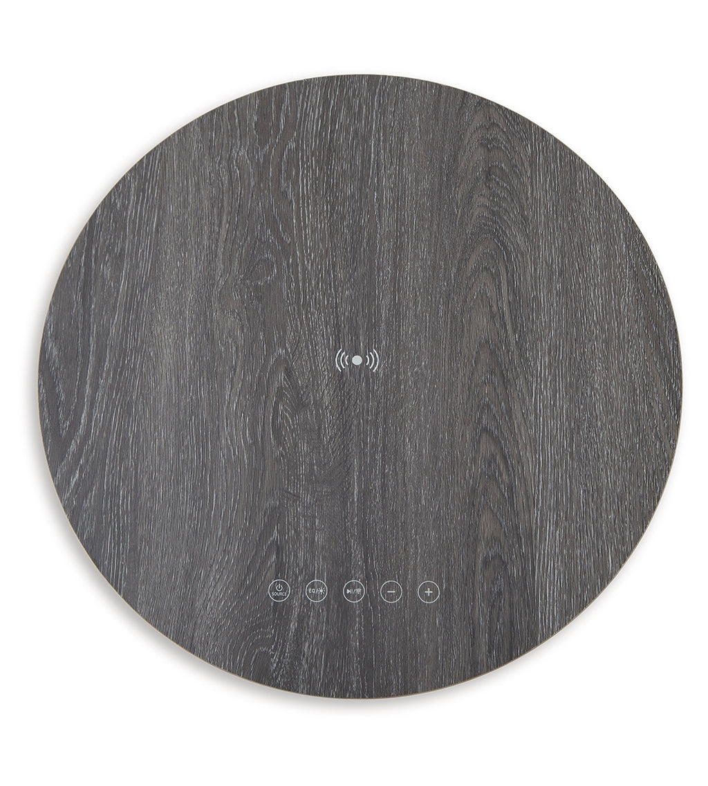 With its decidedly contemporary form, this accent table wows with subtly integrated functional features. Wirelessly connect your audio to its built-in speakers as you host guests or relax solo. Need to charge up as you lounge? Place it next to your sofa to keep its wireless and USB charging options in reach. And the LED light under the tabletop is a convenient way to create added ambiance. | Product Features