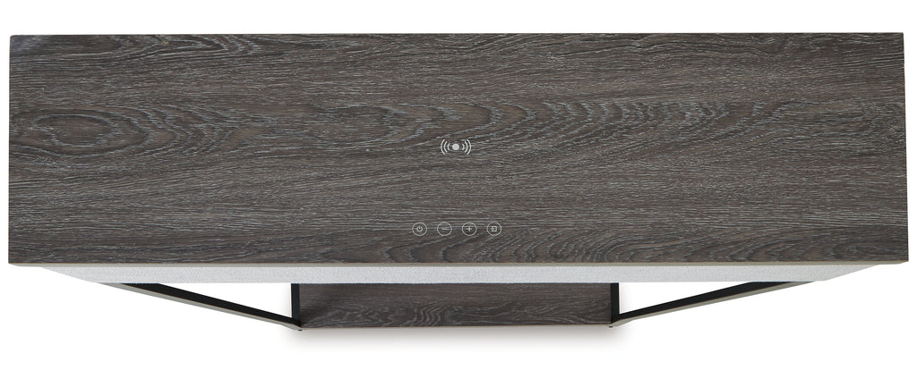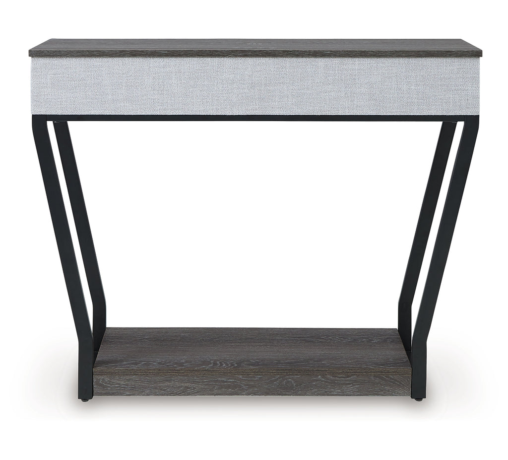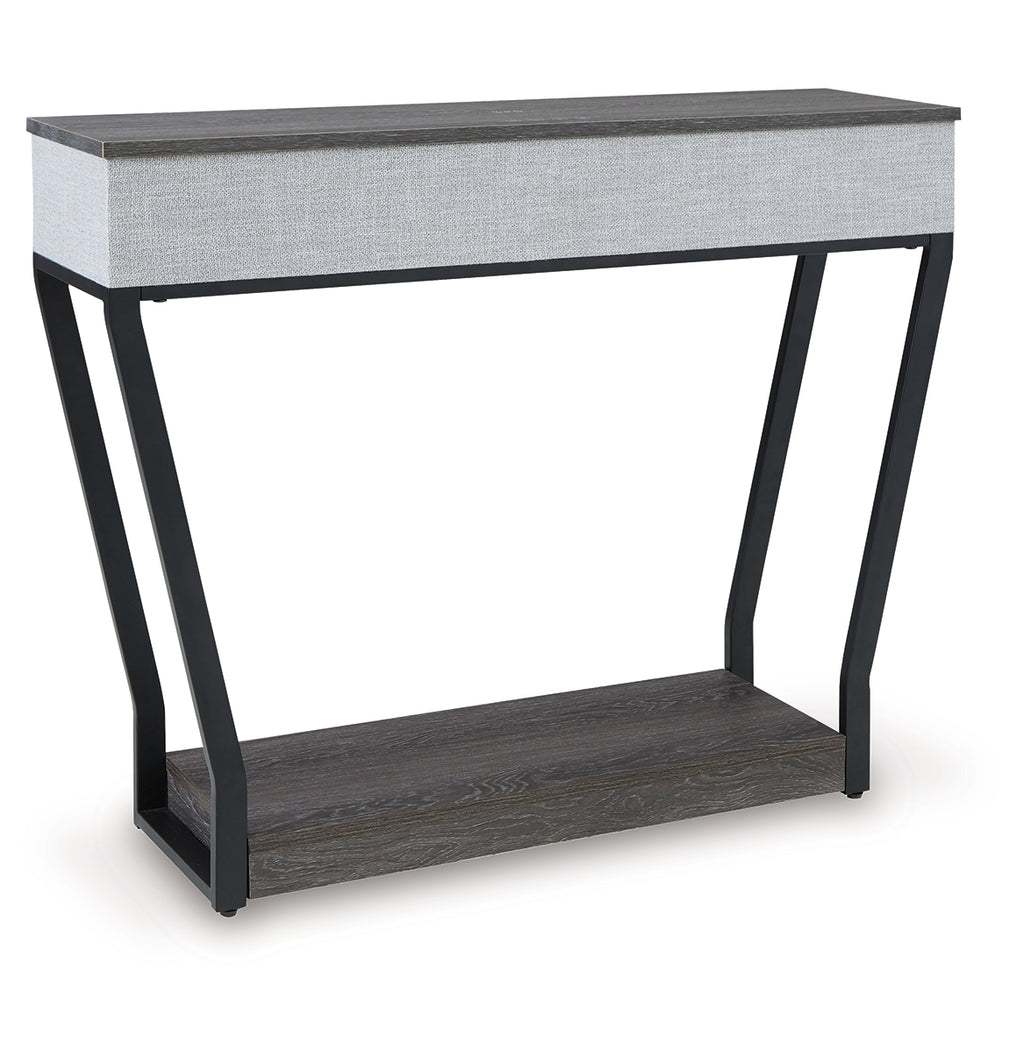 With its decidedly contemporary form, this console sofa table wows with subtly integrated functional features. Wirelessly connect your audio to its built-in speakers for ambiance as you host guests or relax solo. Need to charge up as you lounge? Rest this console against the back of your sofa to keep its wireless and USB charging options in reach. The table's spacious top and lower shelf leave plenty of room to customize the look with your favorite decorative accents. | Product Features