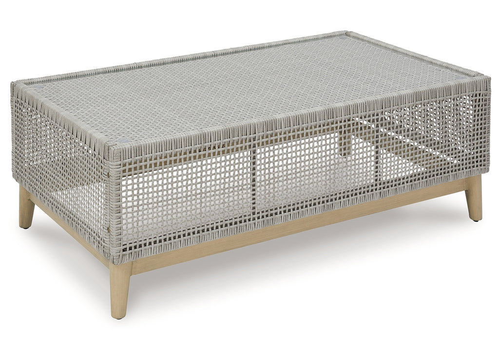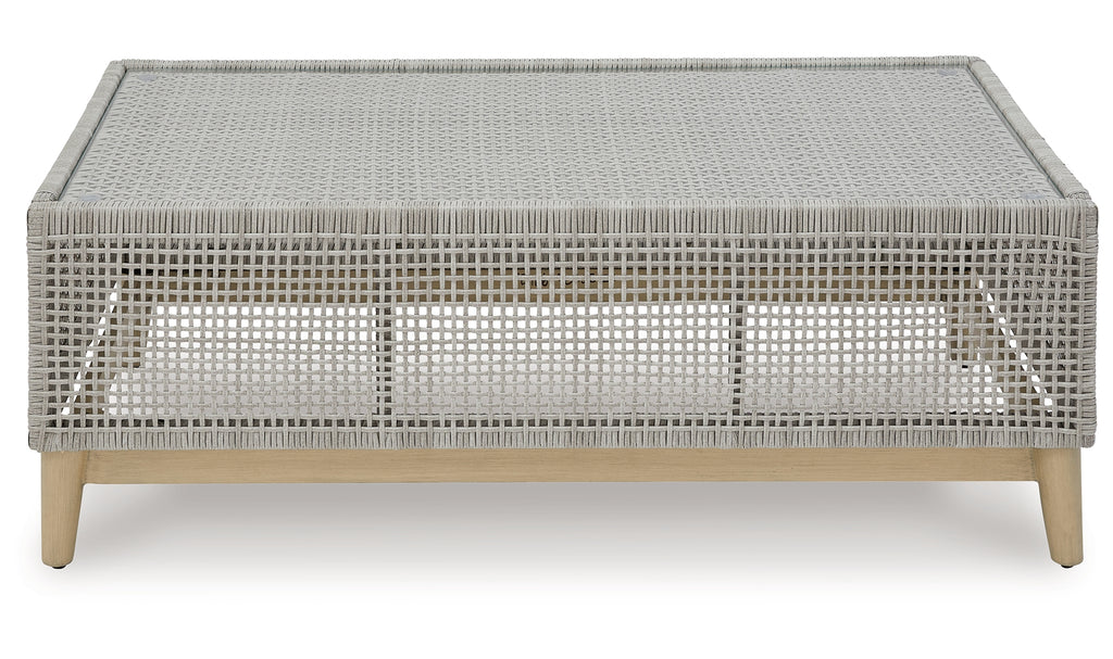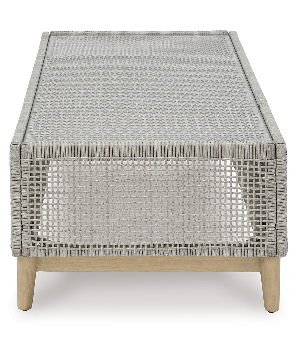 This coffee table invites your casual contemporary style outdoors. With its resin wicker in a chic neutral hue, it expertly marries refined design with durability. Breezy summer mornings and cold winter nights are made all the more enjoyable with a glass tabletop on hand to hold beverages, snacks and your latest poolside read.