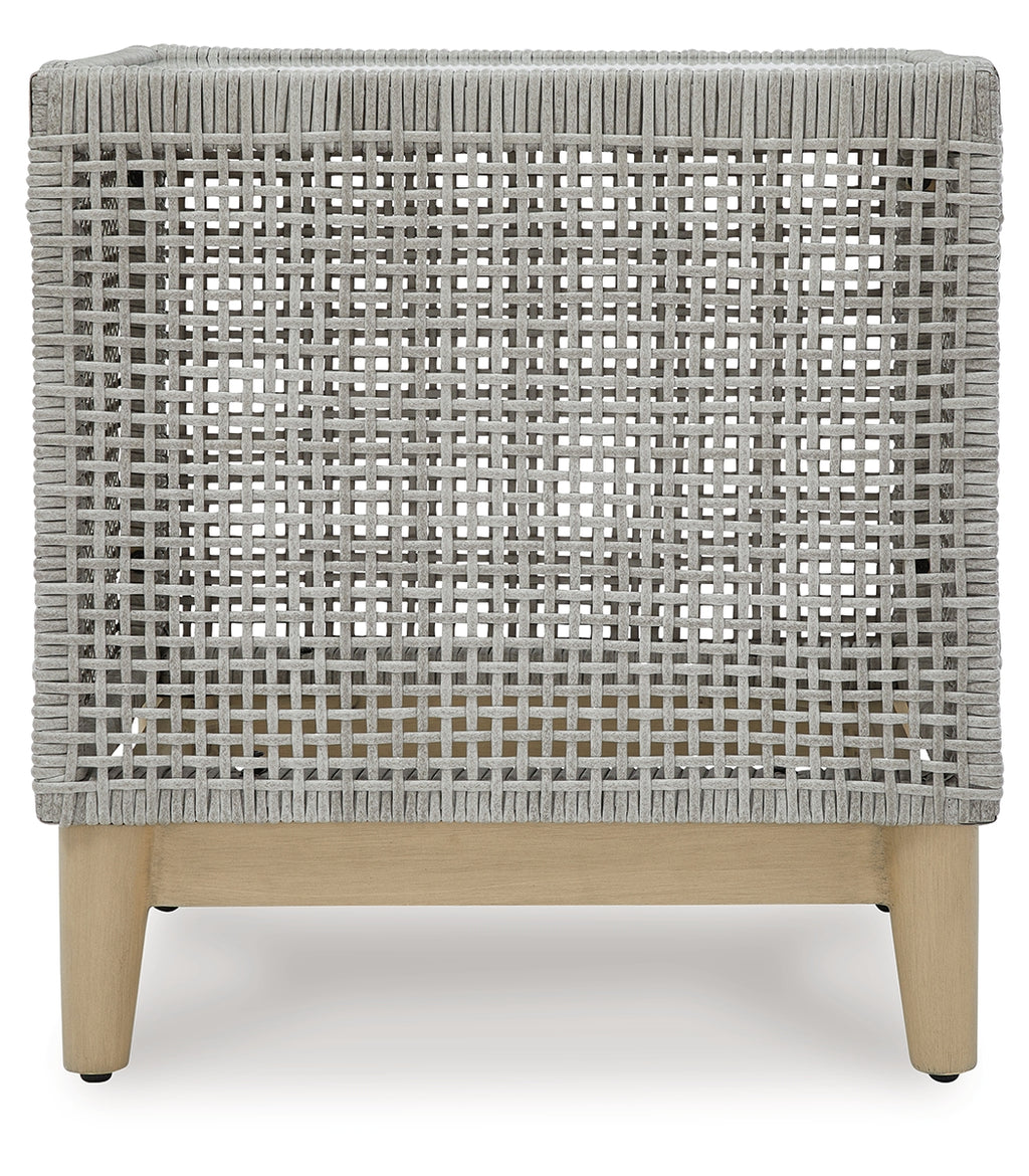 This end table invites your casual contemporary style outdoors. With its resin wicker in a chic neutral hue, it expertly marries refined design with durability. Breezy summer mornings and cold winter nights are made all the more enjoyable with a glass tabletop on hand to hold beverages, snacks and your latest poolside read.