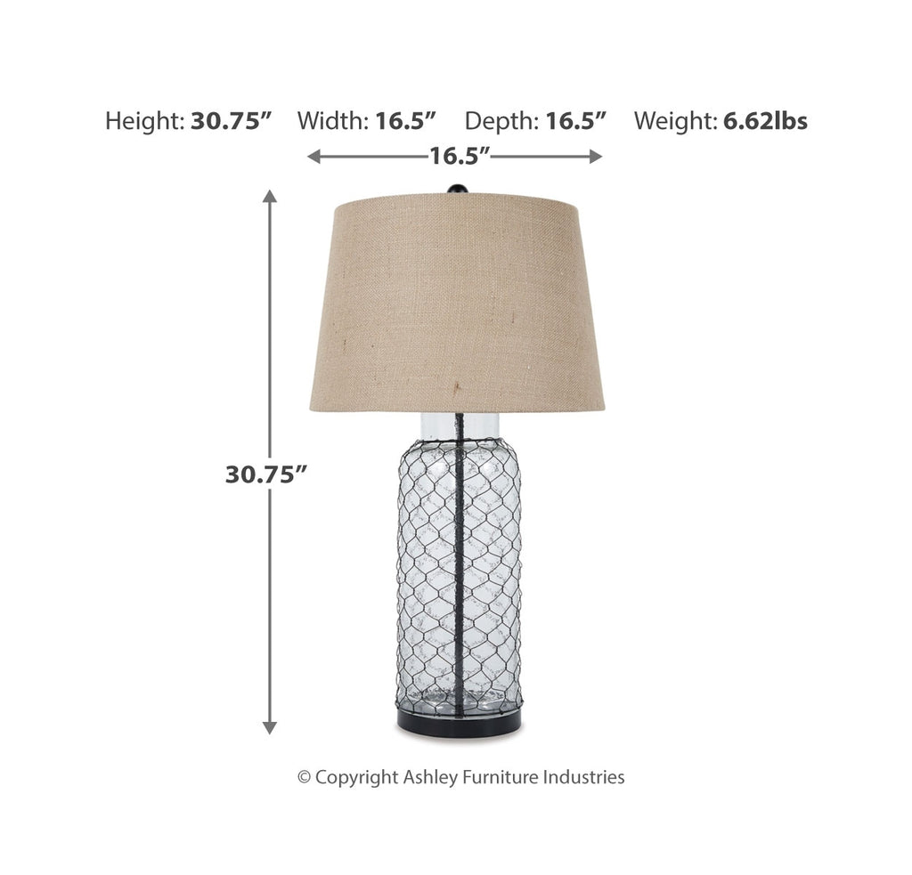 - Lamp base made of clear glass with wire metal detail