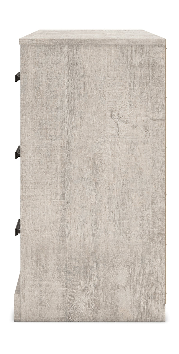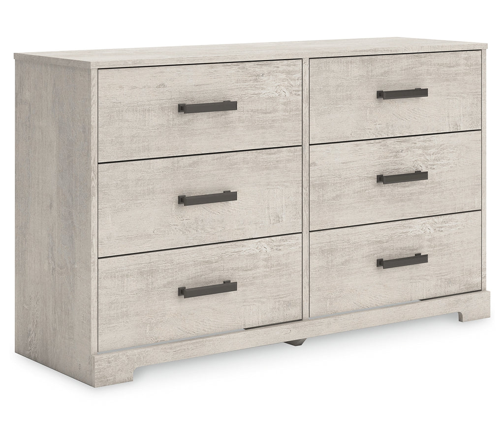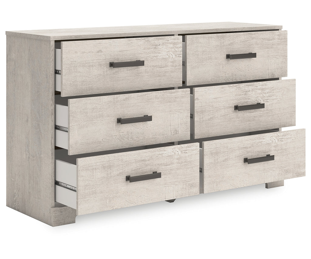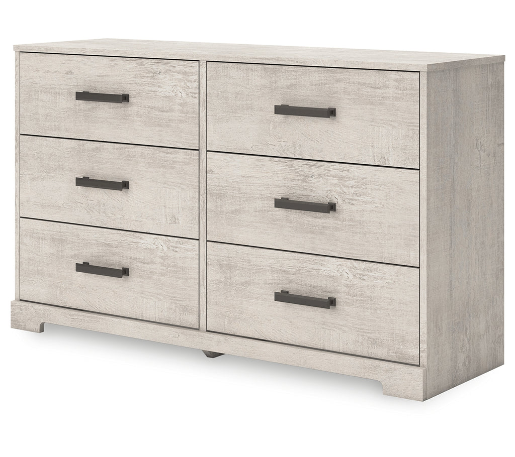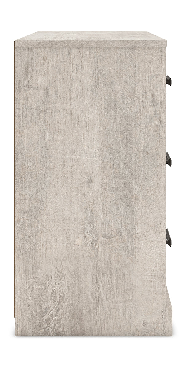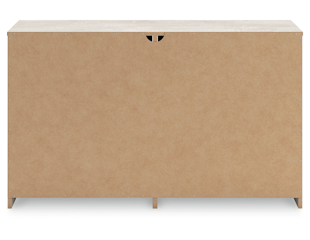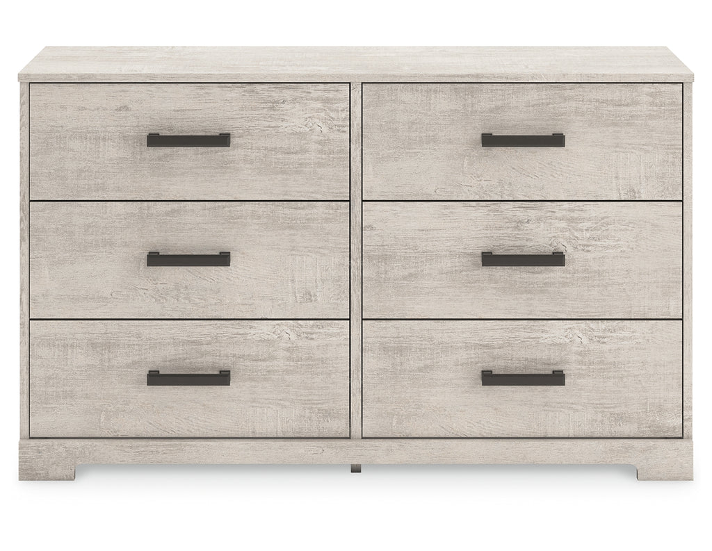 Give casual a new meaning with the chic look of this dresser. A light gray finish over replicated oak grain keeps it laid-back and inviting, while substantial pulls in a warm pewter tone add a modern farmhouse touch. Spacious drawers give you plenty of room to store your wardrobe. Talk about a delightfully relaxed vibe in your inner sanctum. | Product Features