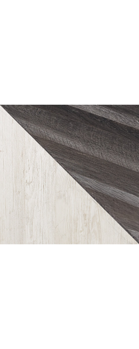 - Top with rustic gray planked replicated oak grain with authentic touch