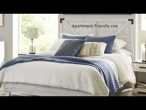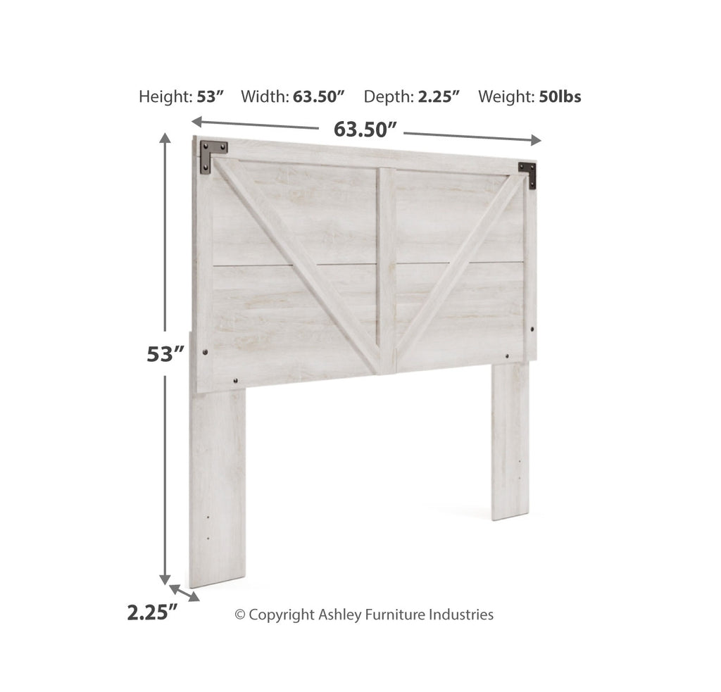 Give provincial a new meaning with the chic look of this queen panel headboard. The white wash distressed finish keeps this piece light and fresh while the warm pewter-tone hardware adds an industrial touch. The panel headboard with crossbuck detail adds a delightfully homespun charm to your space. |