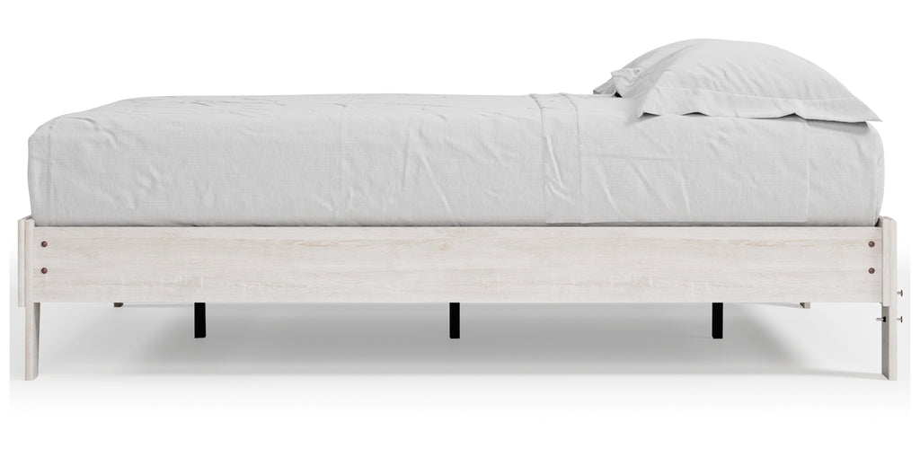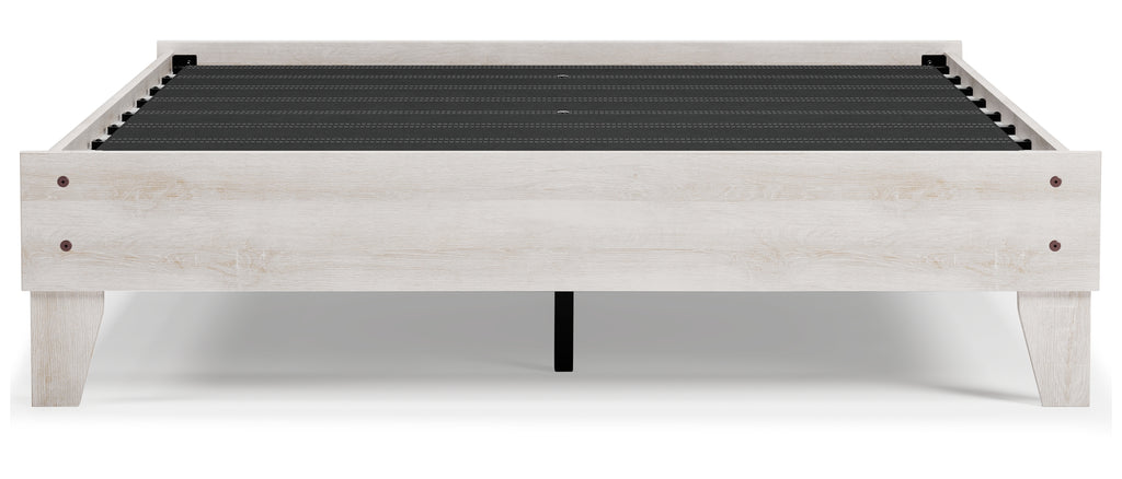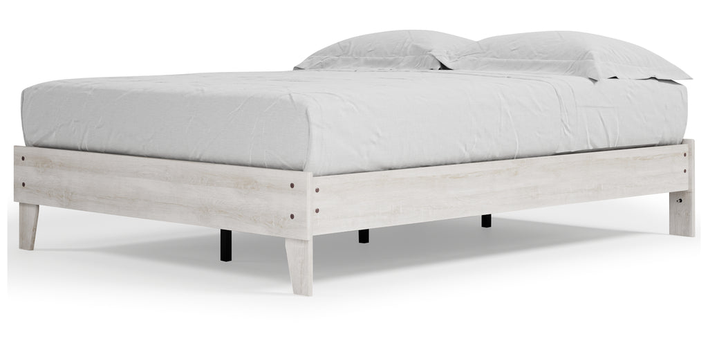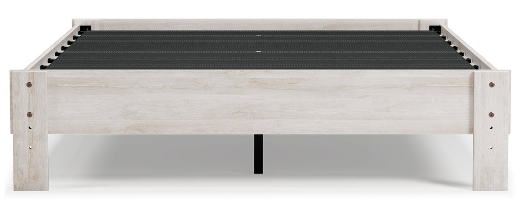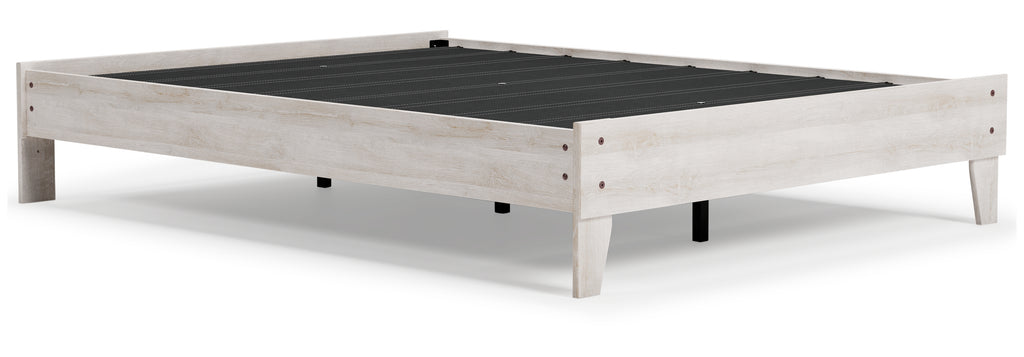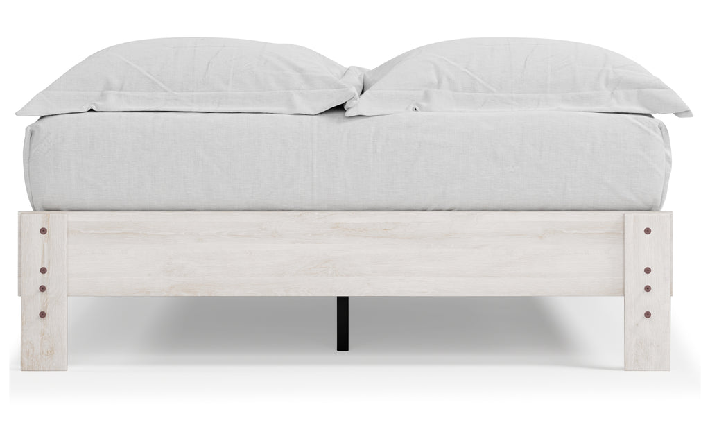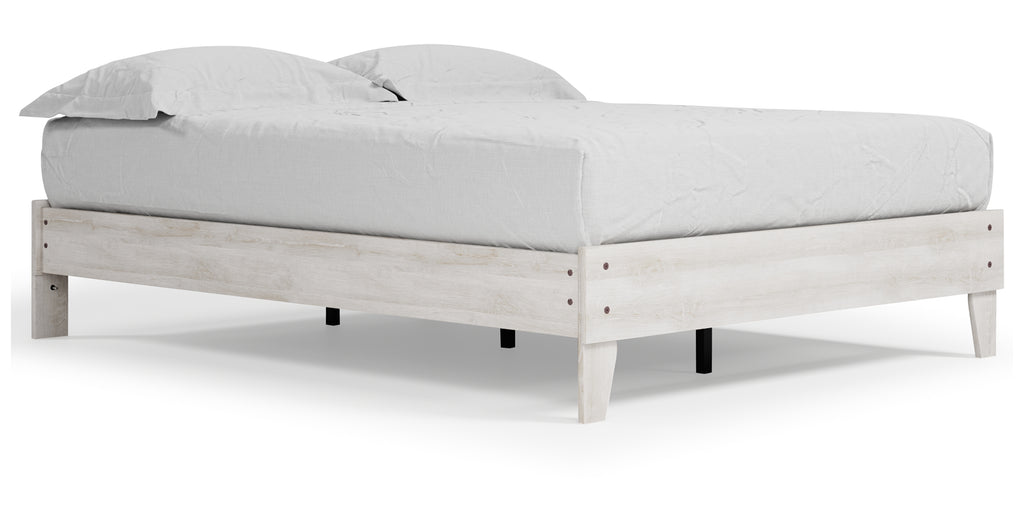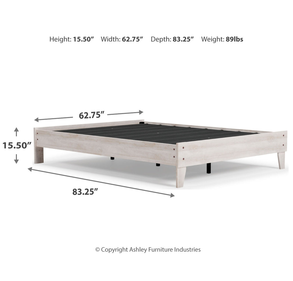 Give provincial a new meaning with the chic look of this queen platform bed. The whitewash distressed finish keeps this piece light and fresh, as does its minimalist aesthetic. | Product Features