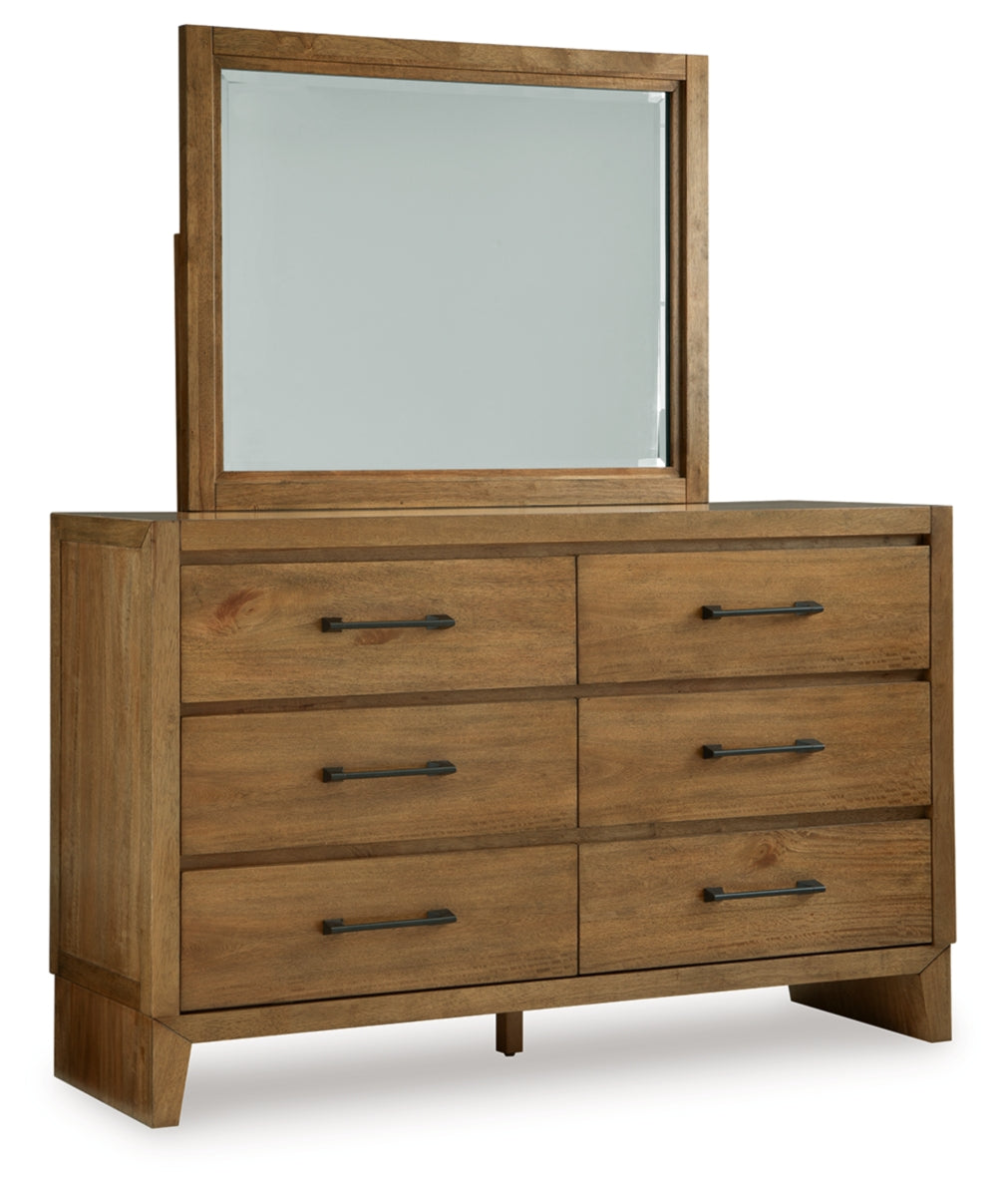 If you appreciate minimalistic style, this dresser and mirror set is the ideal option. Its soft and simple finish has a laid-back sensibility, blending relaxed contemporary design with a trendy allure. The spacious drawers are accented with stylish metal drawer pulls in a darkened bronze tone. What a delightful addition to your casual-chic decor.