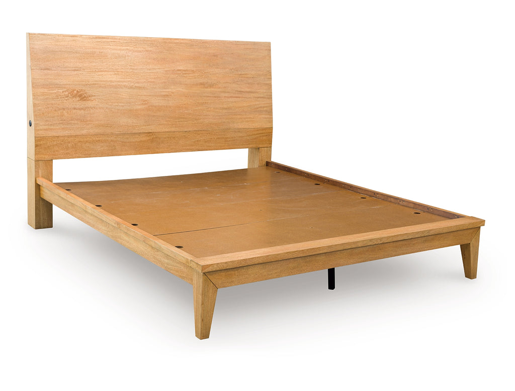 If you appreciate minimalistic style, this king panel bed is the ideal option. Its soft and simple finish has a laid-back sensibility, blending relaxed contemporary design with a trendy allure. The beautiful layback headboard features convenient USB charging ports that are ready to power up your electronics. What a delightful addition to your casual-chic decor. | Product Features