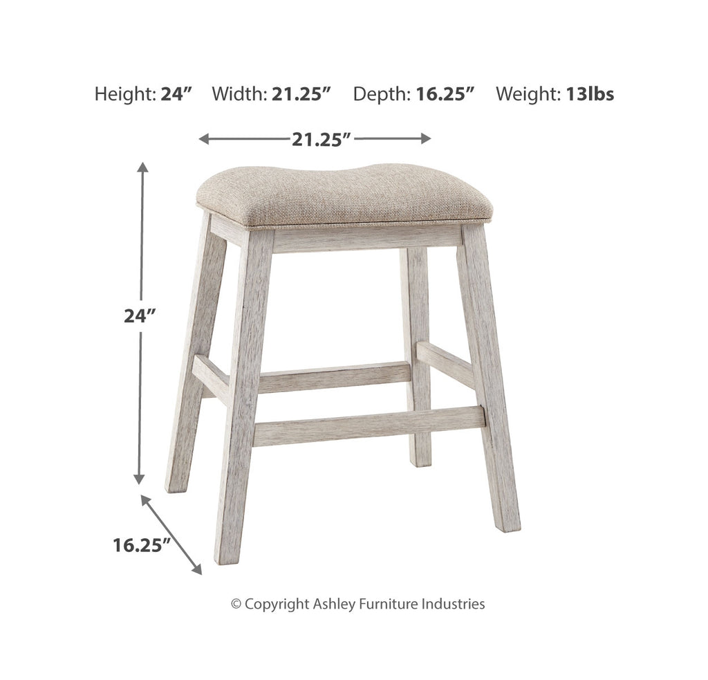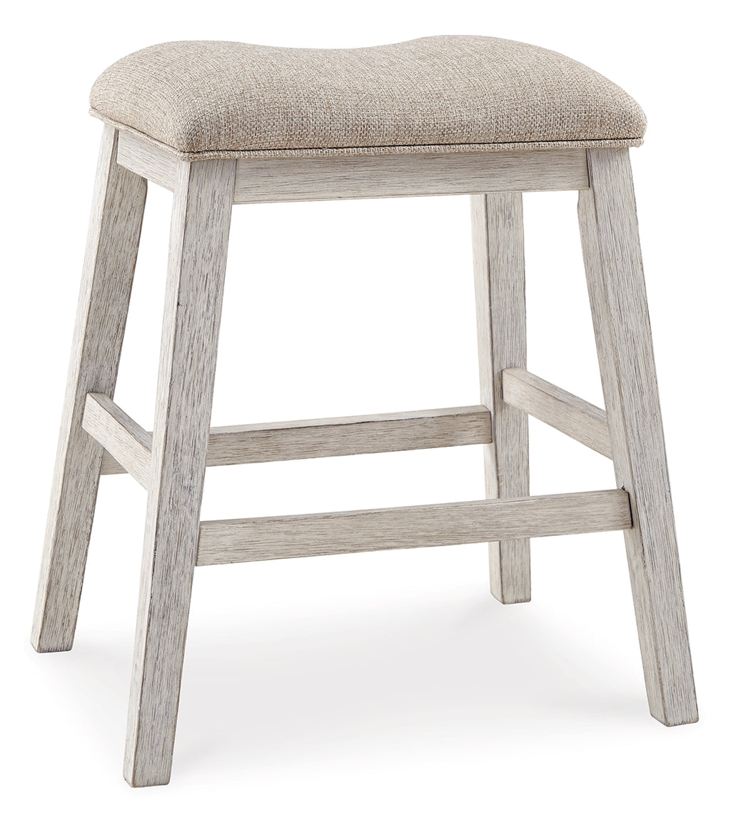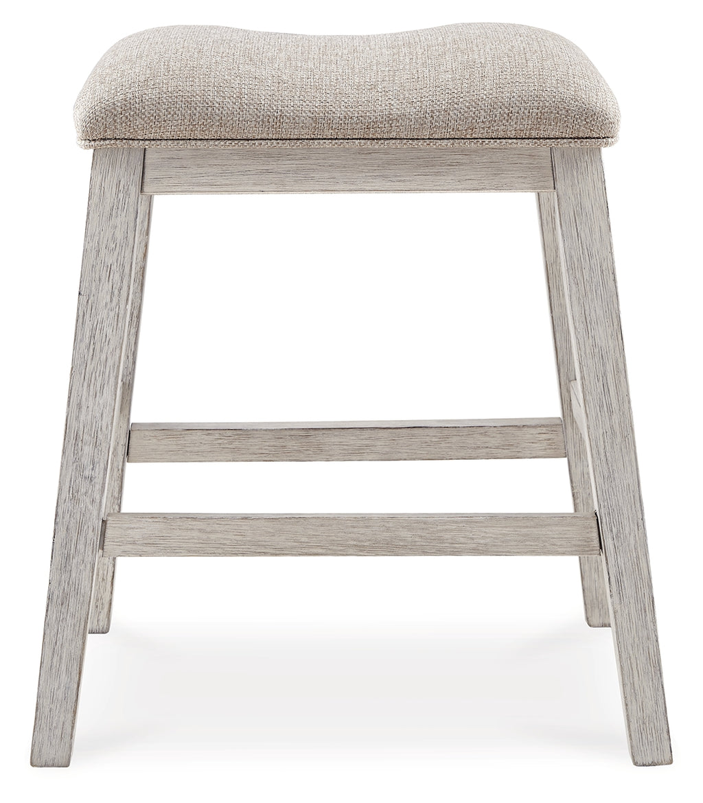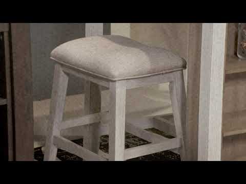 This upholstered stool invites you to raise the bar on small space living. An inspired choice for coastal chic or modern farmhouse settings, this comfortably cushioned stool sports a grayish white finish with rub-through effect for timeworn appeal. | Product Features