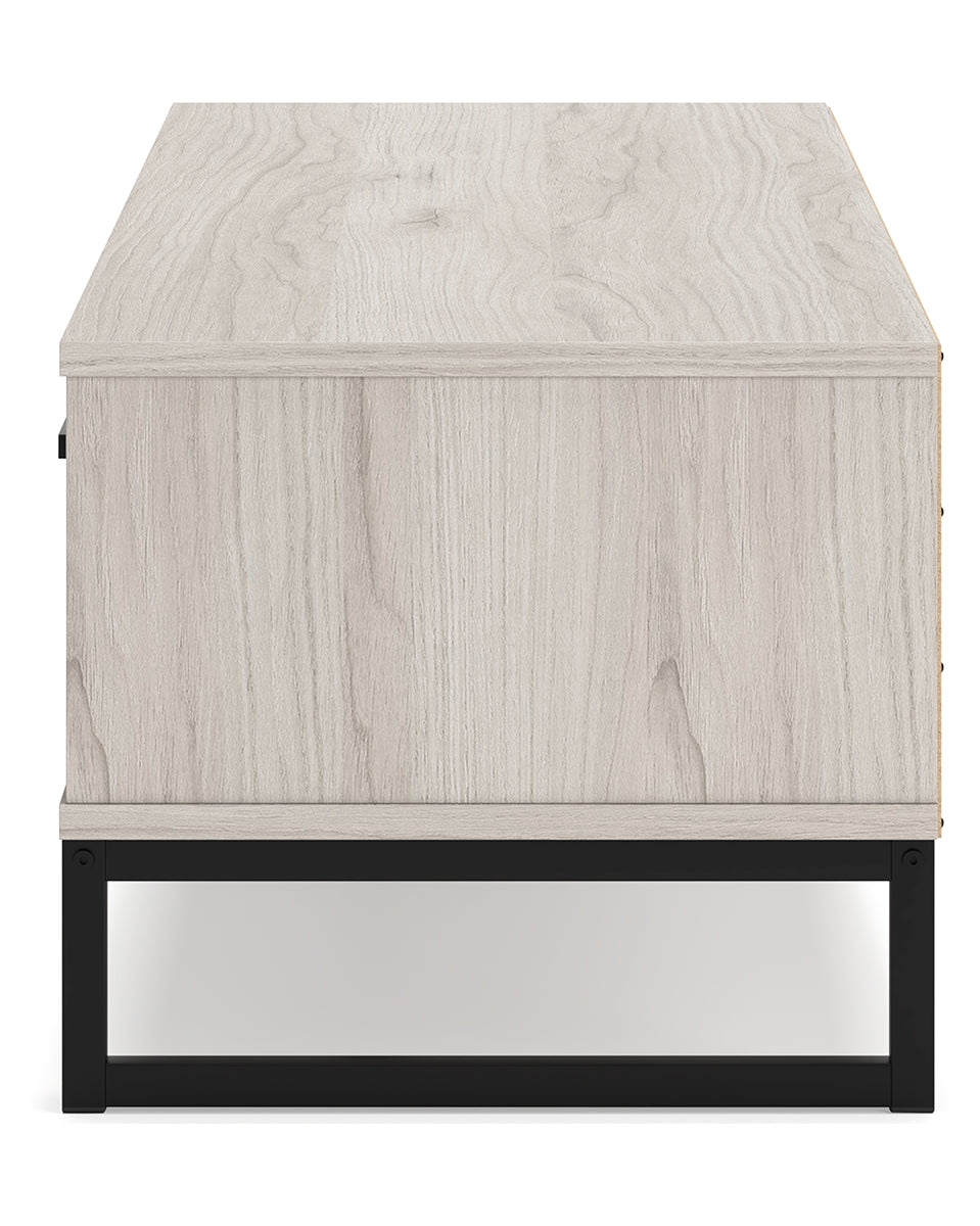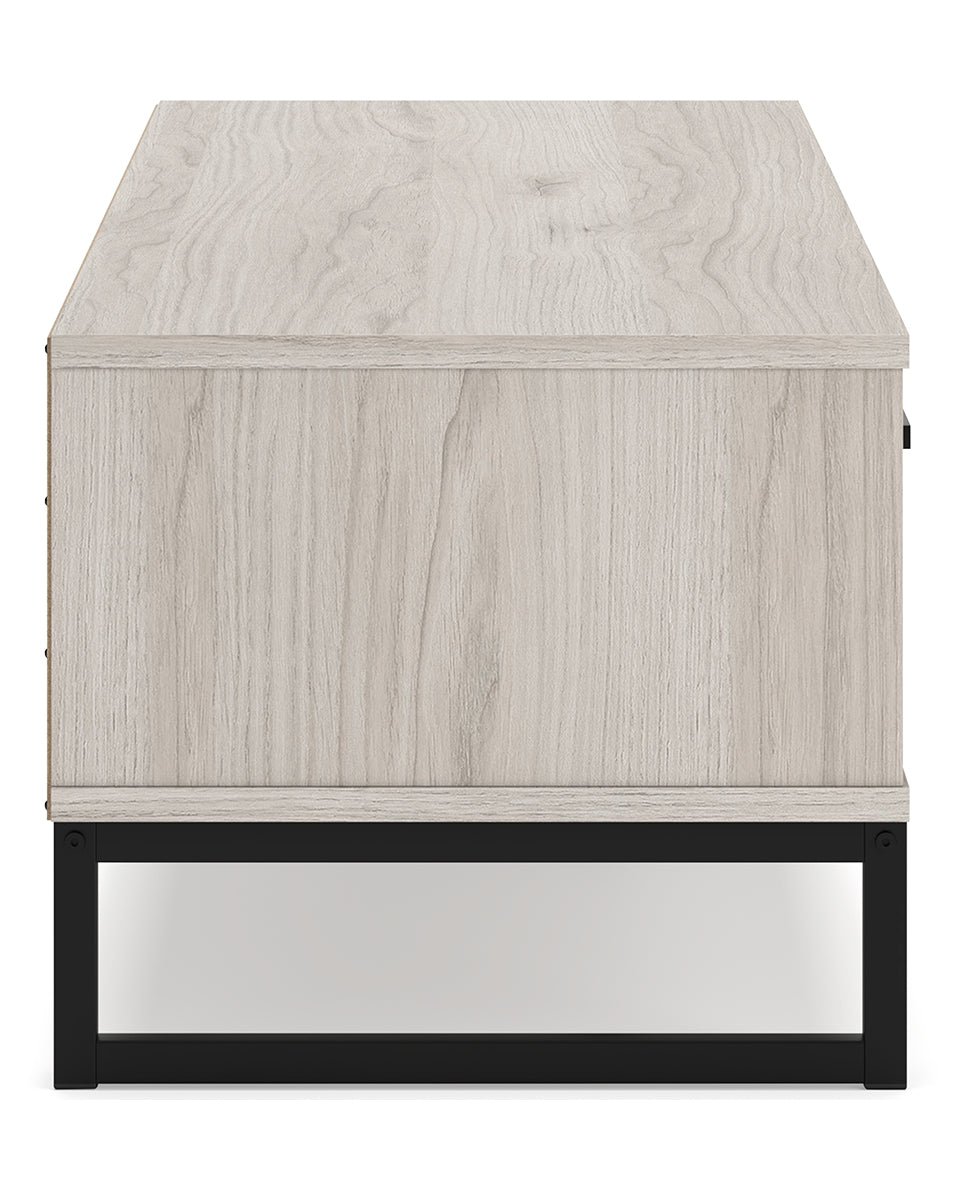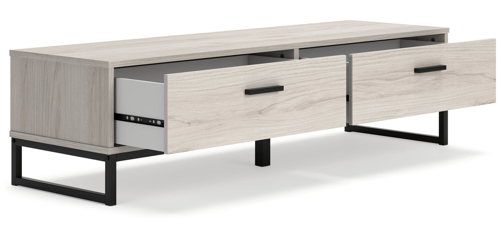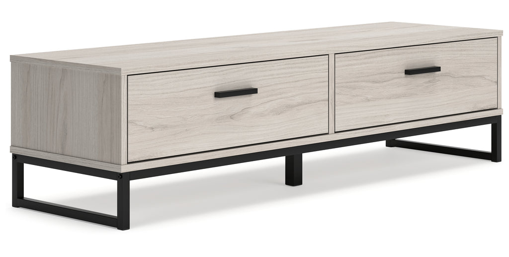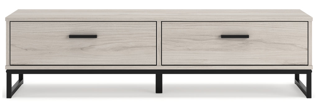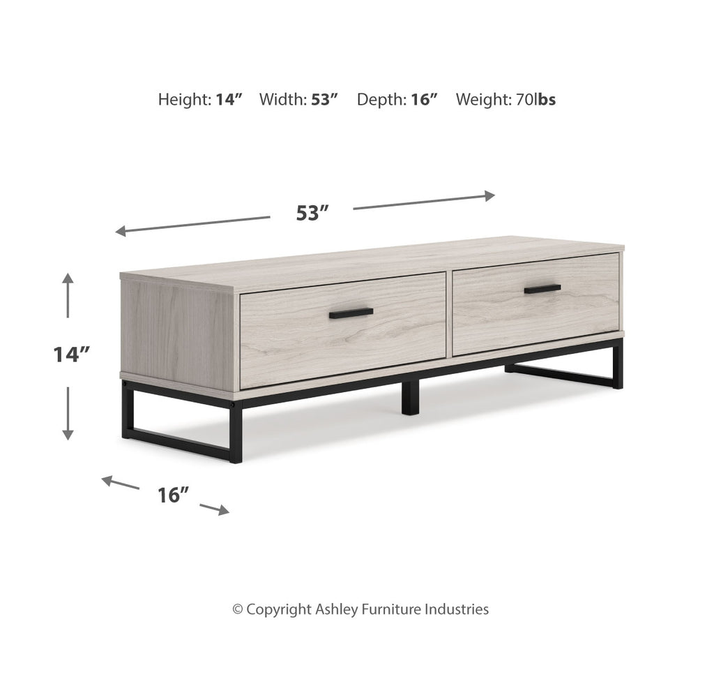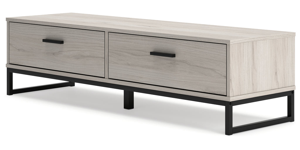 Spruce up your entryway or mudroom with this streamlined storage bench. Two spacious drawers are your new go-to spot for hats, scarves and outdoor gear. Contemporary handles and sled-style legs with a dark pewter-tone finish emphasize the sleek, contemporary profile. |