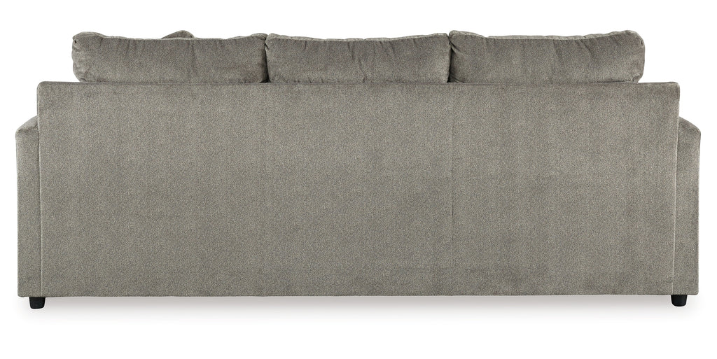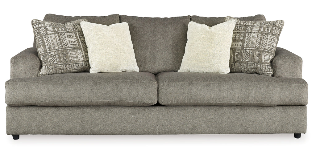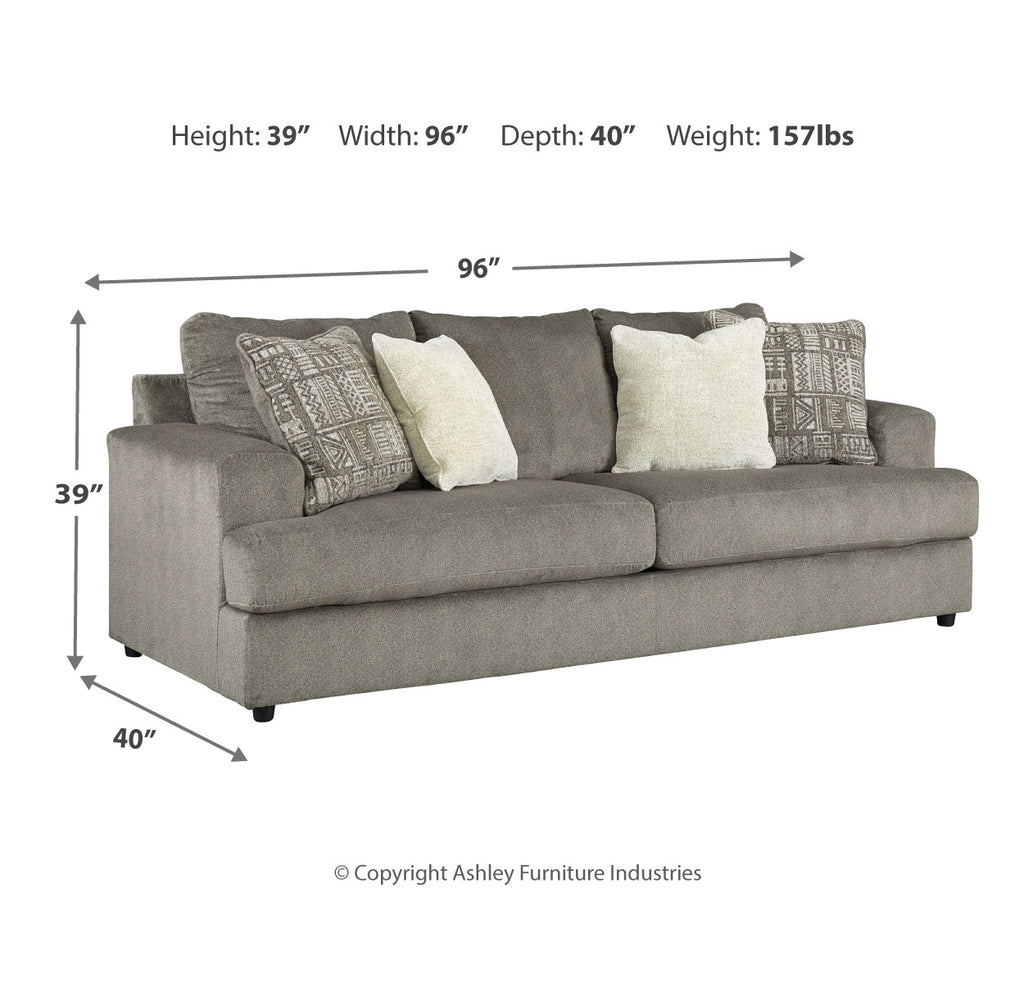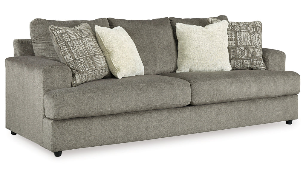 Flaunting a trendsetting silhouette, this sofa puts the contemporary in your contemporary home. Its “three over two” profile eliminates the center seat cushion, giving you elongated plushness and deep seating. And the microfiber fabric satisfies your need for a piece that feels as good as it looks. Soft jacquard chenille throw pillows add a splash of geometric pattern and color contrast. | Product Features