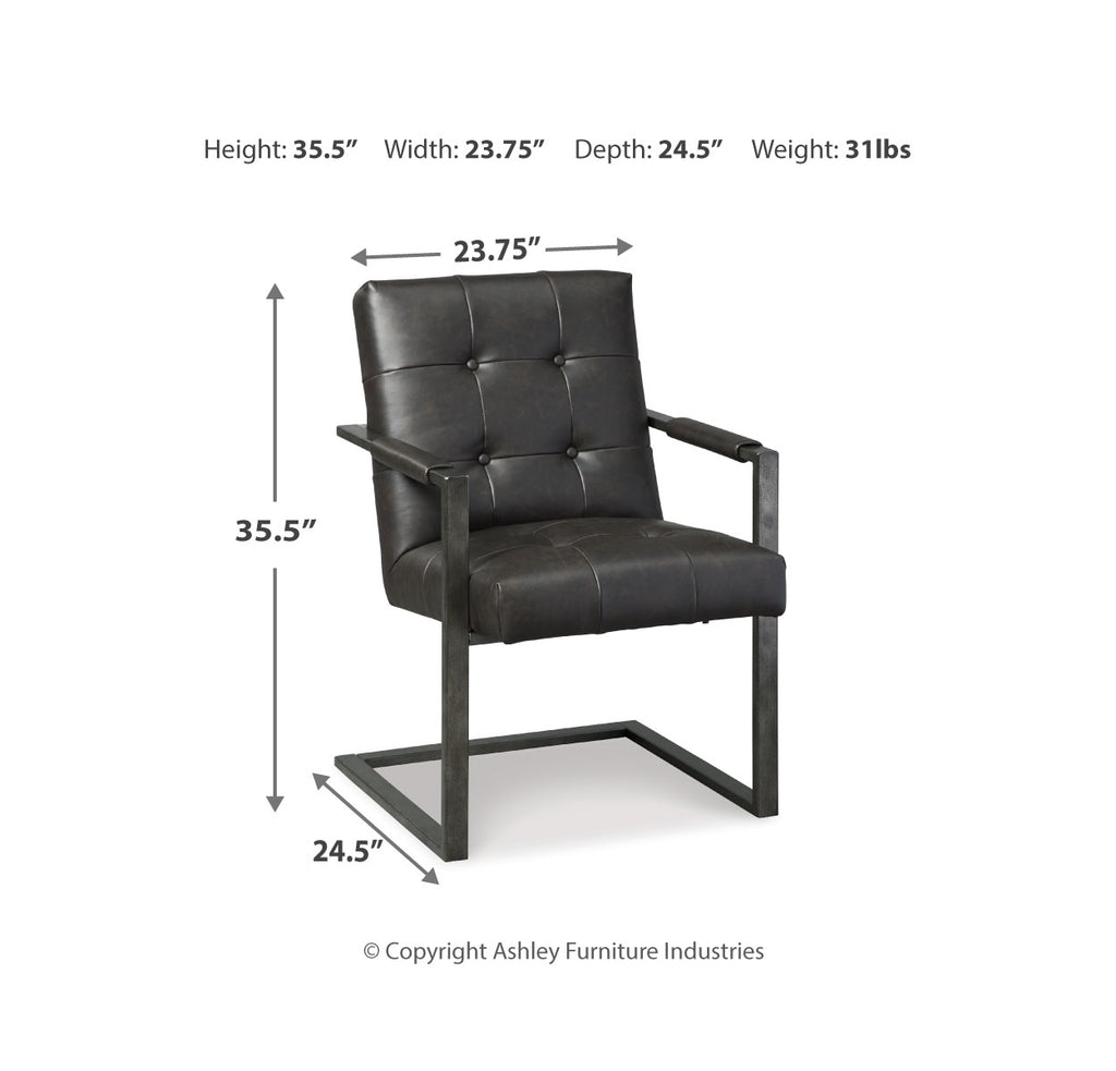 For fans of urban industrial design, this chair steals the show. Its metal C-frame in a blackened gunmetal finish is sleek, sculptural and ultra modern. Crafted for looks and comfort, the tufted box seat, wrapped in a “weathered” faux leather upholstery, is loaded with retro chic flair. Whether paired with Starmore’s home office desk or dining room table, it’s a feast for the eyes. | Product Features