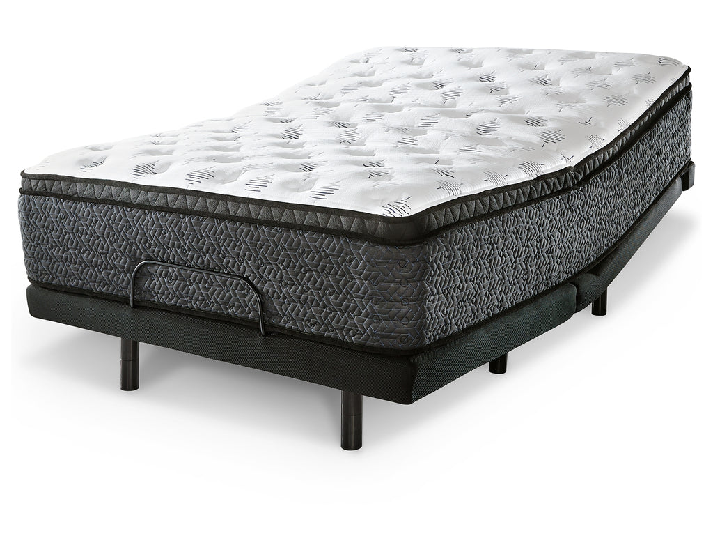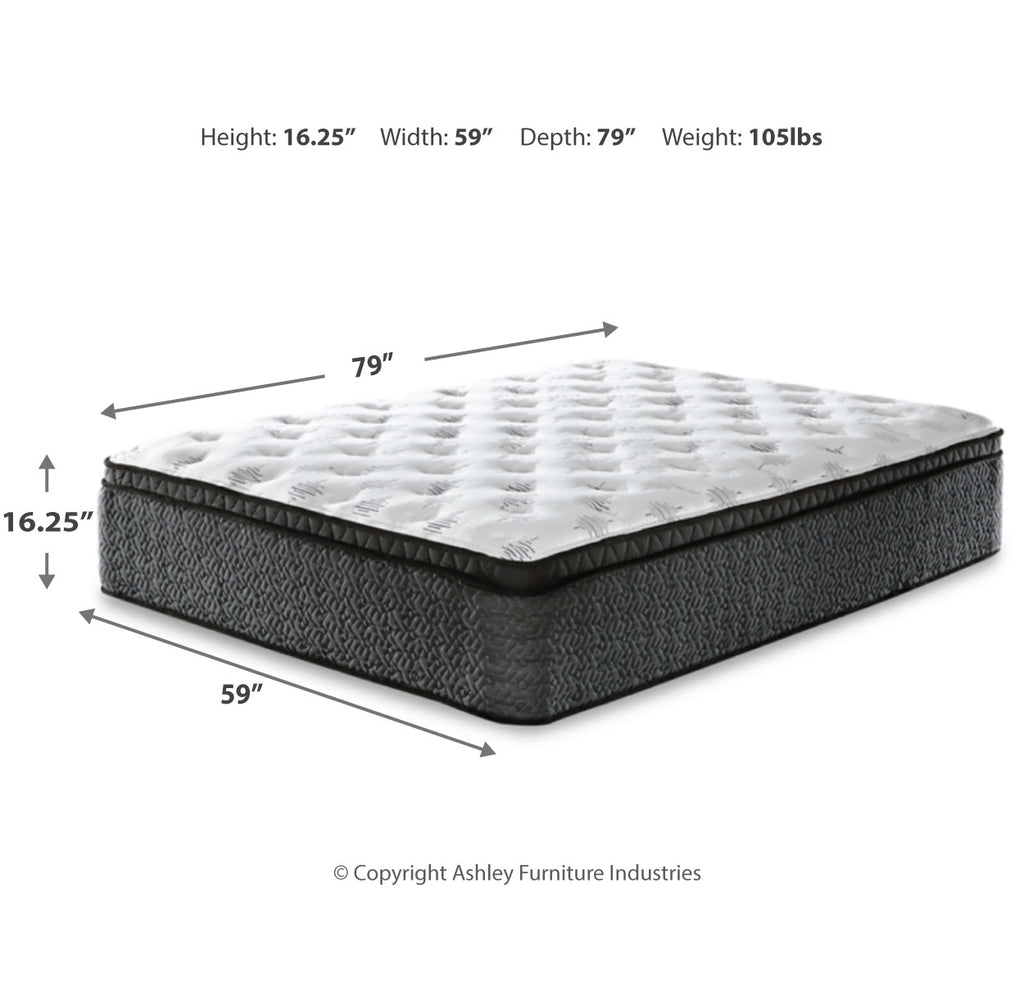 Enjoy endless possibilities for restful sleep on this Euro top mattress with hyper-cool technology. You get the best of both worlds with this hybrid innerspring mattress: the pressure relief of cooling gel-infused memory foam, coupled with body contouring wrapped coils for superior support. Rest assured that high-density quilt foam provides the comforting feel you love. Plus, this mattress arrives in a box for quick, easy setup. Just cut away the plastic wrap and unroll it. Foundation/box spring available, sold separately. | Product Features