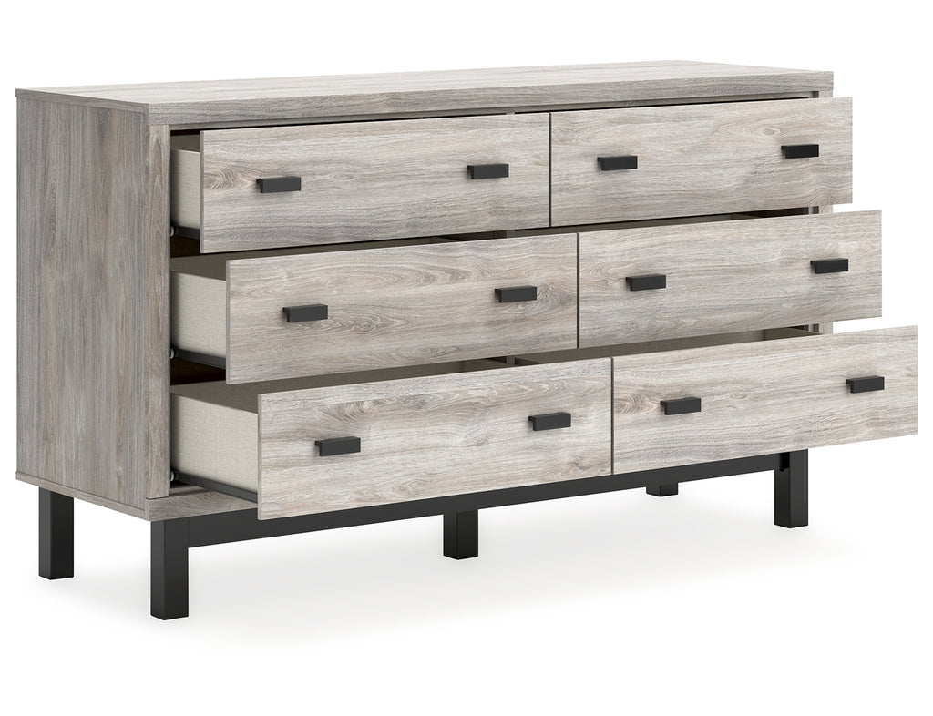 Craft a contemporary hideaway without breaking the bank. An elegant juxtaposition of refined neutral hues, this two-toned dresser brings sleek style to your space. Matte black drawer handles enhance the sheer simplicity of its profile. With this storage piece, a bedroom brimming with luxury has never been more attainable. | Product Features