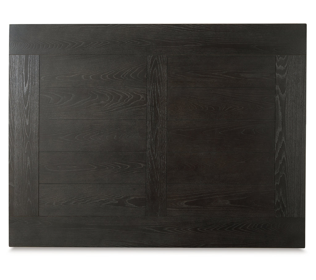 - Rich layered black finish on textured wood grain surface with rubbed-through edges