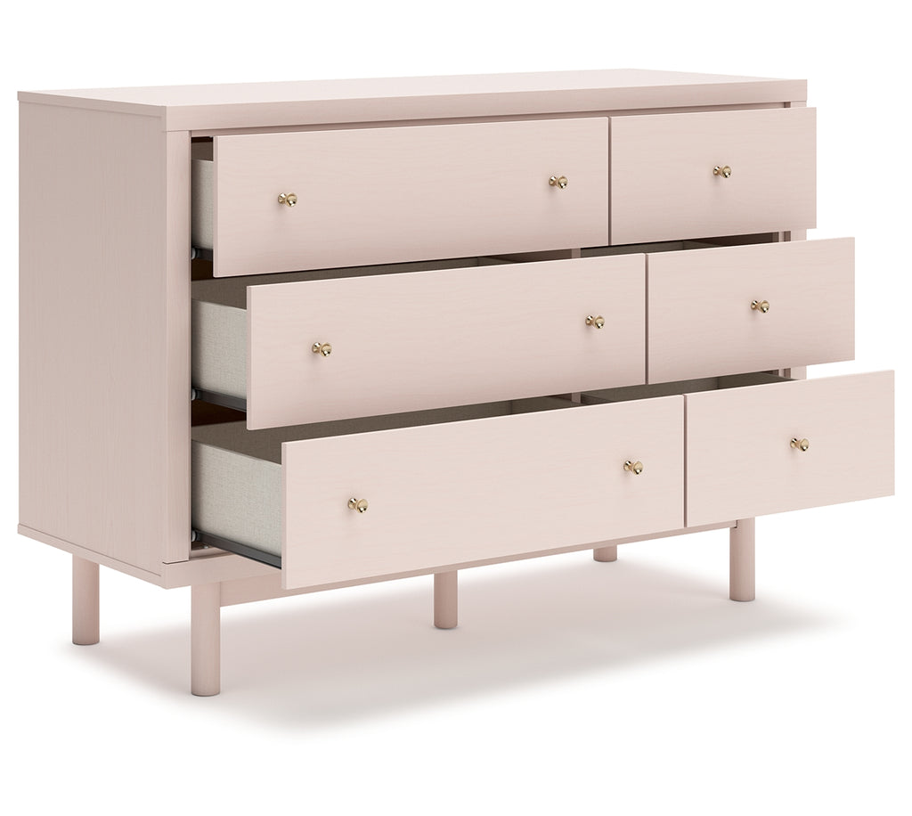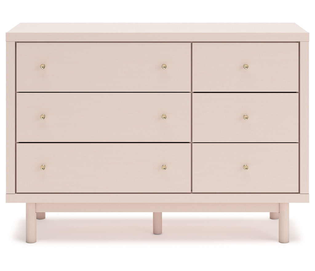 Pretty in pink. This dresser keeps the spirit of your home’s modern aesthetic while suiting all your young one’s needs. Its subtle blush finish brings a playful, charming vibe to organizing clothes and other essentials. Made for her and styled for you, it’s a lovely addition to a beautifully chic child’s bedroom. | Product Features