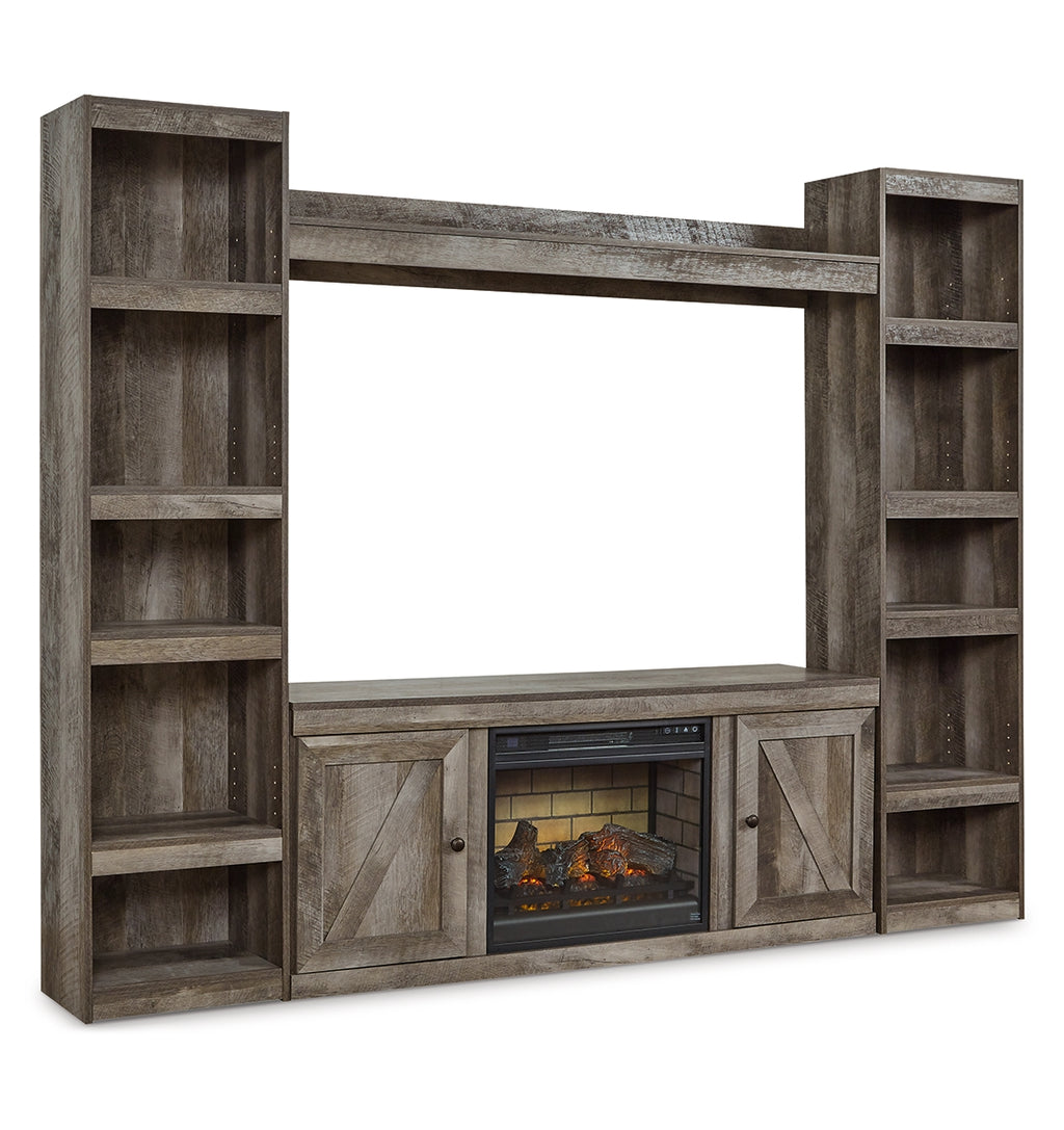 - Includes TV stand, 2 piers, bridge and electric fireplace insert (W100-01)