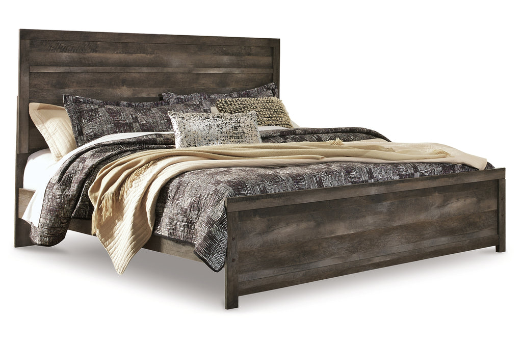 This king panel bed is sure to win your heart with its daring, designer take on modern rustic. The bed’s crisp, clean and minimalist-chic profile is enriched with a striking replicated oak grain with thick plank styling and a weathered gray finish for that much more authentic character. Mattress and foundation/box spring available, sold separately. | Product Features